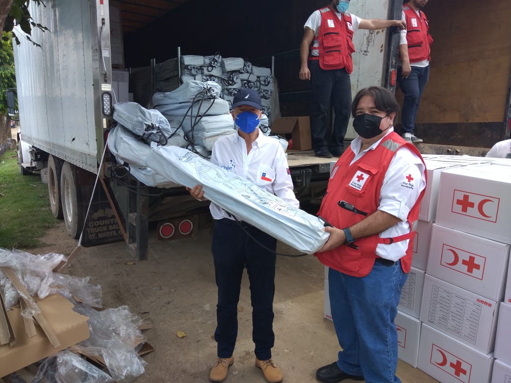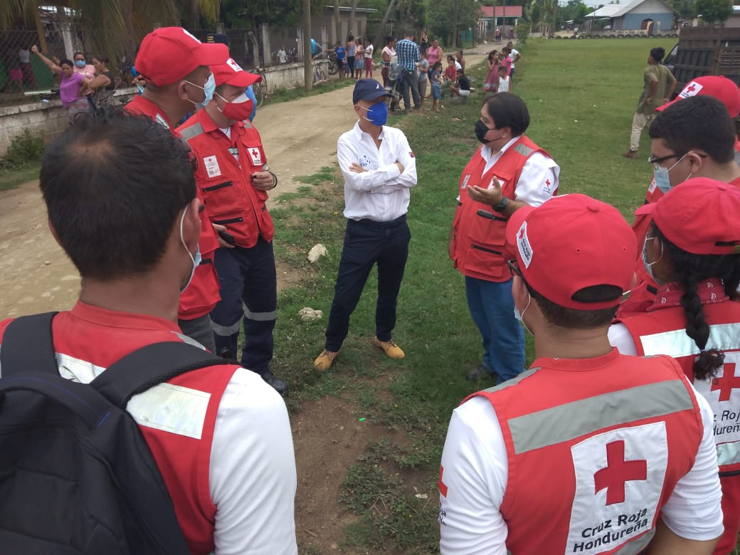 El jueves 17 de junio, por invitación de la Cruz Roja de Honduras, el Embajador Enrique Barriga visitó la Comunidad de la Protección, en Choloma Cortés, oportunidad donde conoció la importante labor que, realiza dicha entidad en el lugar, presenciando la entrega de diversos kits, de apoyo a las familias asentadas quienes sufrieron los rigores de las tormentas tropicales Eta y Iota,