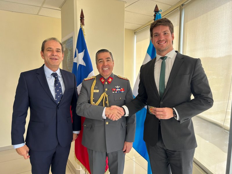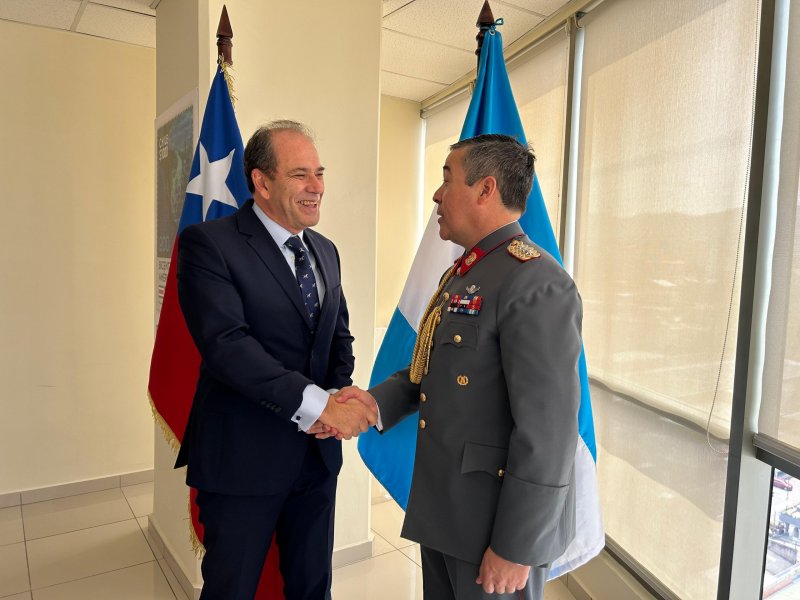 El embajador Marco Aguayo, en compañía del cónsul Thomas Schroder, recibió la visita del Coronel Gonzalo Hernández Urrutia, agregado de Defensa, Militar, Naval y Aéreo de la Embajada de Chile en El Salvador, concurrente para las embajadas de Honduras, Guatemala, México y Nicaragua, con motivo de presentarse oficialmente y conversar sobre temas de interés mutuo.