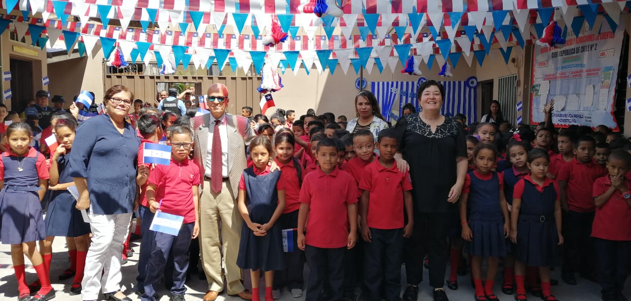 Visita de Embajador Barriga y Cónsul Morales a la Escuela República de Chile Nº2 de Tegucigalpa