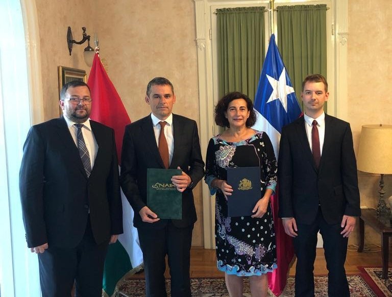 El jueves 9 de julio, se realizó -en dependencias de la Embajada de Chile en Hungría y mediante videoconferencia- la ceremonia de firma del Memorándum de Entendimiento entre el Instituto de Investigación Agrícola (INIA) de nuestro país y el Centro Nacional de Investigación e Innovación Agrícola (NAIK) húngaro.