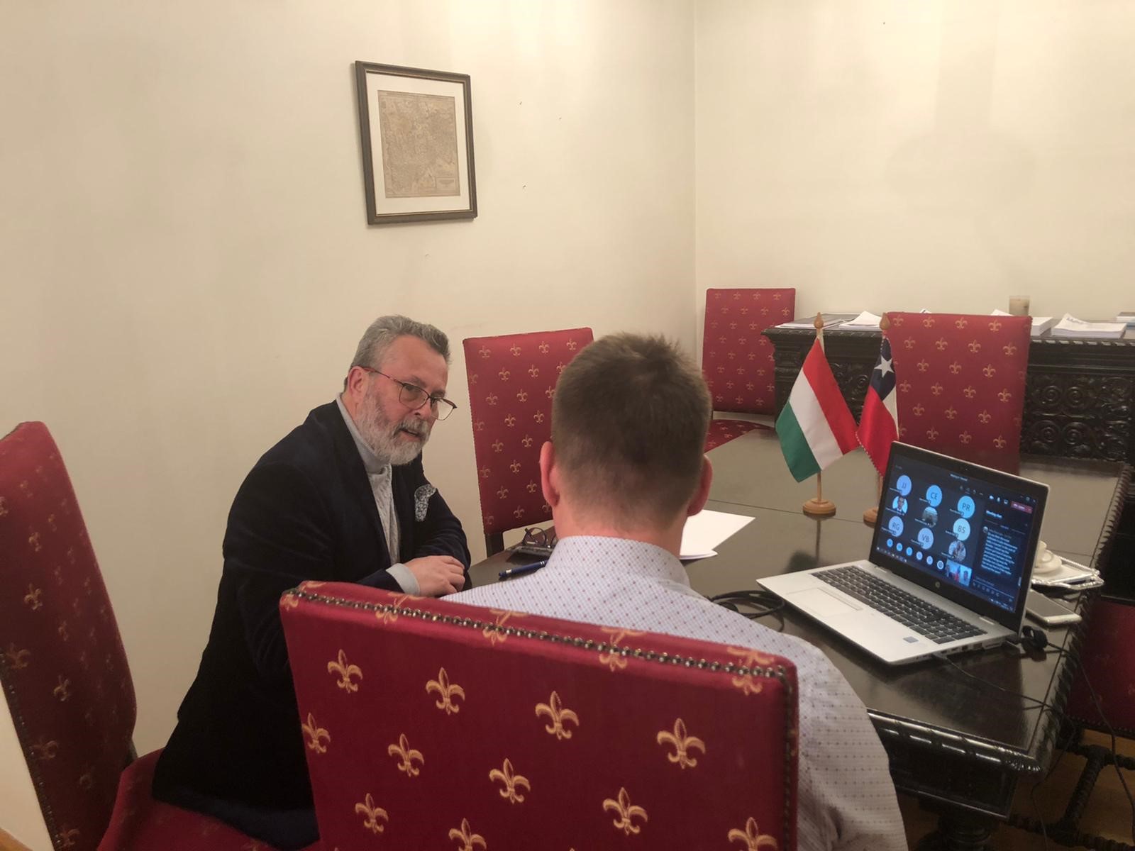 Durante el encuentro, en que participó también el Sandor Nagy, profesor de aquella universidad, el Embajador Sanhueza hizo un recuento de la historia, geografía y política nacional con énfasis en los aportes de Chile al mundo y el proceso constituyente.