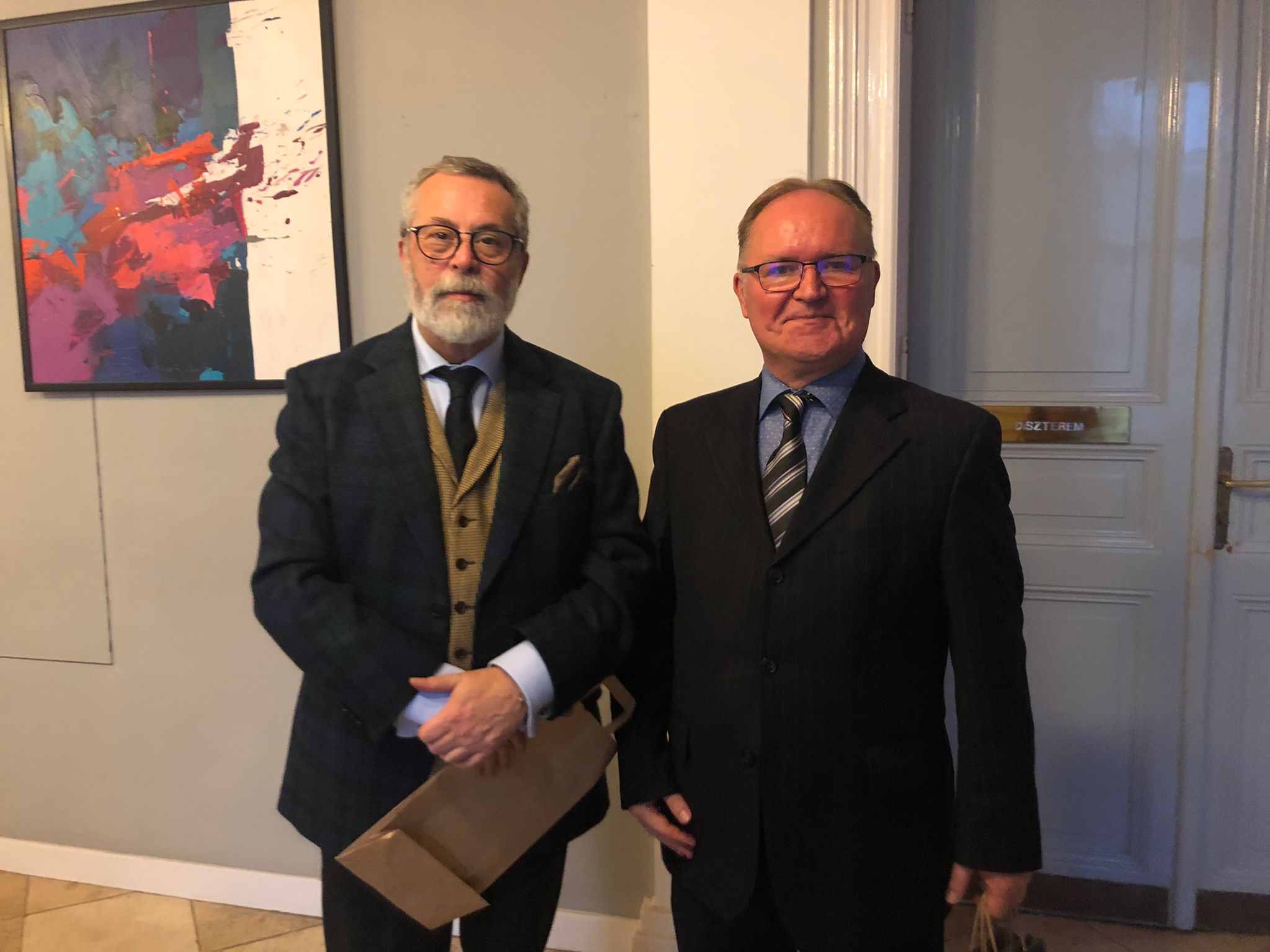 Durante el encuentro, el Embajador fue recibido por la Vice Decana de la Facultad de Humanidades de la Universidad de Szeged, Dra. Ágnes Sávai-Matuska y el Director del Departamento de Español de esa casa de estudios, Dr. Tibor Berta.