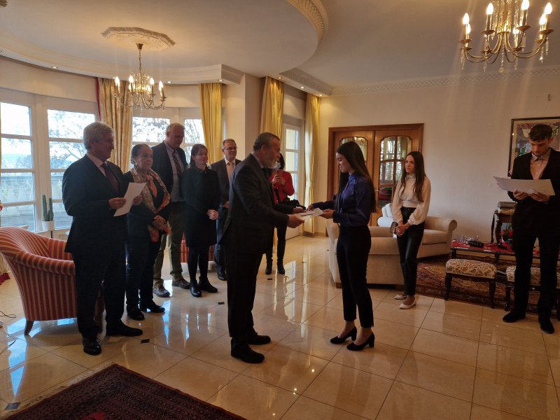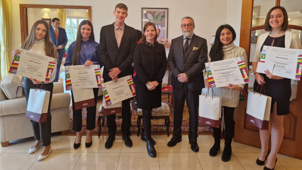 La premiación tuvo lugar en la Residencia de México y contó con la presencia de la Presidenta del Grupo de Amistad Hungría- América Latina, Parlamentaria Sra. Mónika Bartos, el Embajador Especial para la fundación EULAC Sr. Pál Varga Koritár, el Director para América Latina y el Caribe del Ministerio de Relaciones Exteriores, Sr. Lorand Endreffy y los Embajadores y Encargados de Negocios de los nueve países latinoamericanos que patrocinaron el evento. Este certamen se organiza anualmente desde el año 2017 y cuenta con el apoyo de del Ministerio de Relaciones Exteriores de Hungría, el Parlamento Húngaro y del Departamento de Español de la Universidad de ELTE.