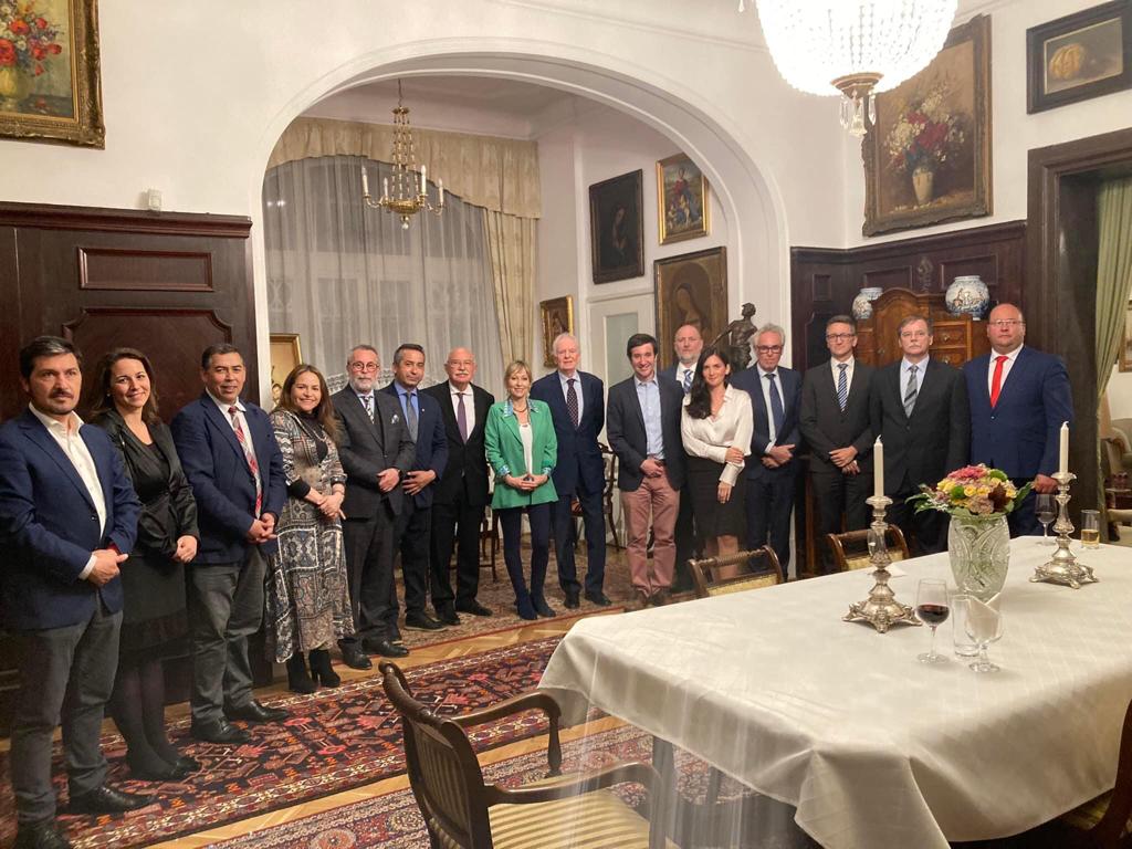 La velada incluyó a relevantes figuras de la política nacional en los ámbitos de Relaciones Exteriores, diplomacia, agricultura, asuntos parlamentarios y migraciones. Durante el encuentro, los representantes del poder legislativo chileno tuvieron la oportunidad de exponer respecto a chile y sus áreas de interés en particular.