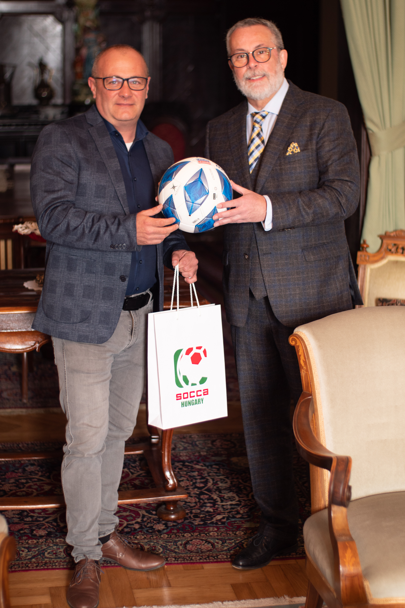 Tras la exitosa participación del equipo chileno en el campeonato mundial de fútbol modalidad seis por lado - SOCCA Budapest 2022 - el Embajador de Chile en Hungría, Sr. Camilo Sanhueza, recibió al Presidente de SOCCA Hungría Sr. Tibor Csuhai.