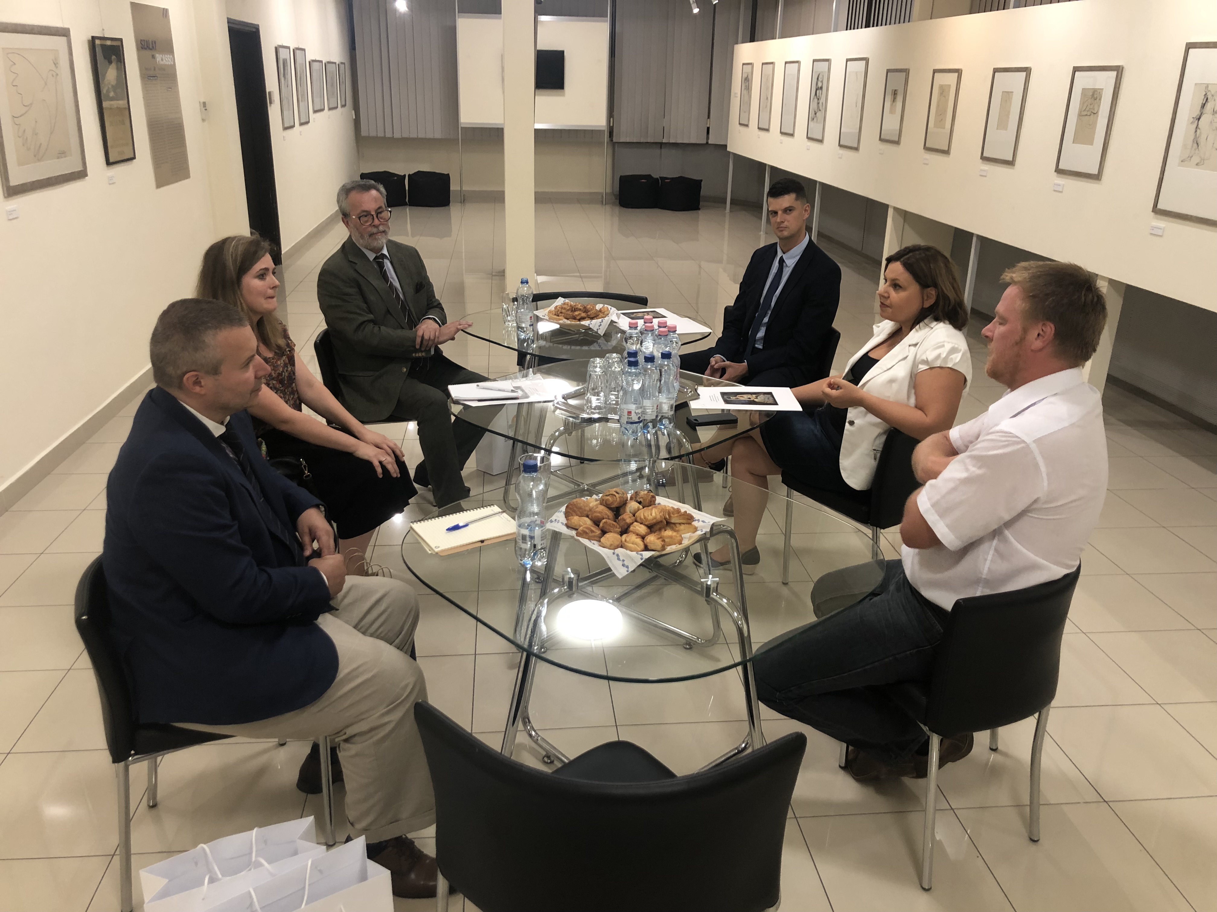 Durante la visita el Embajador sostuvo reunión con la Directora del Museo y el encargado de asuntos culturales de la Municipalidad de aquella ciudad a fin de planificar actividades conjuntas de promoción de la vida y obra del artista.