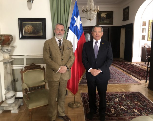Embajador Camilo Sanhueza recibe a la nueva embajadora de Argentina