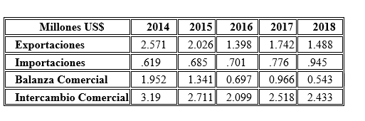 Comercio exterior Comparte Síguenos A+ A- CHILE – INDIA Evolución del Intercambio Comercial 2014- 2018 (Fuente: SUBREI) Para obtener mayor información respecto al Comercio Exterior entre Chile e India puede dirigirse al sitio web de ProChile.