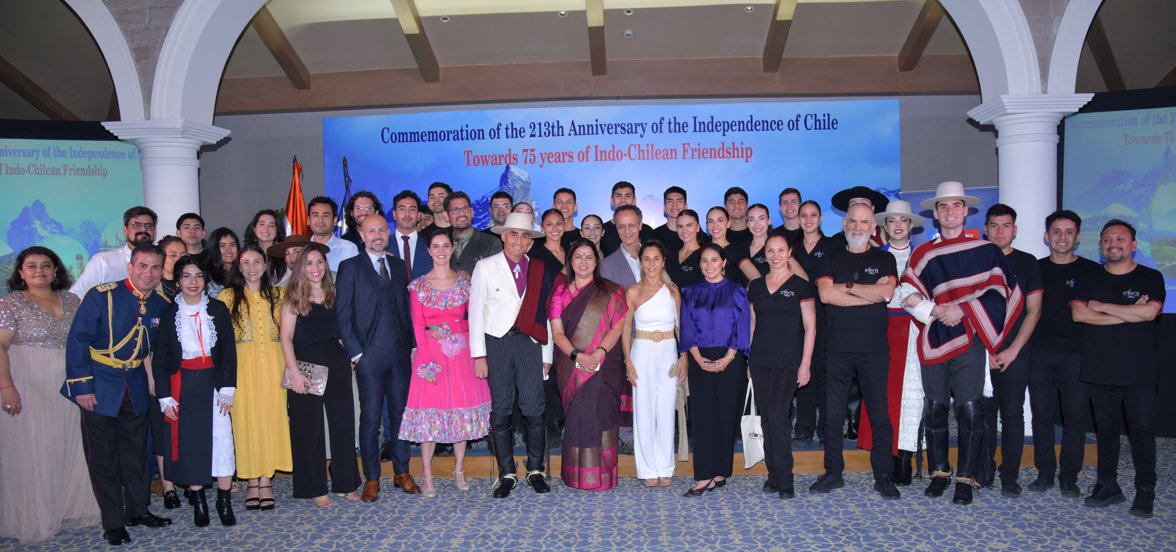 El 27 de septiembre la Embajada de Chile en India realizó la celebración del 213º aniversario de la Independencia de Chile. La actividad, desarrollada en el prestigioso Hotel Taj Mahal de Delhi, contó con la presencia —como invitada de honor— de la ministra de Estado de Asuntos Exteriores y Cultura, Meenakshi Lekhi, así como parte del cuerpo diplomático y de la comunidad chilena en India.