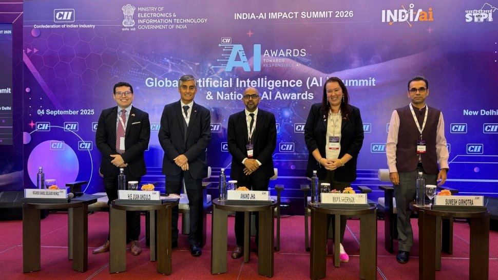 El Embajador de Chile en India, Juan Angulo, participó en un panel sobre inteligencia artificial y diplomacia el marco de los “Premios IA” de la Confederación de Industria India (CII), que reúne a las principales empresas e industrias de India, donde compartió la visión de Chile en materia de inteligencia artificial. Este evento se realiza anualmente y en él se reconoce a las empresas en India que lideran procesos de transformación digital y el uso de nuevas tecnologías, especialmente de inteligencia artificial.