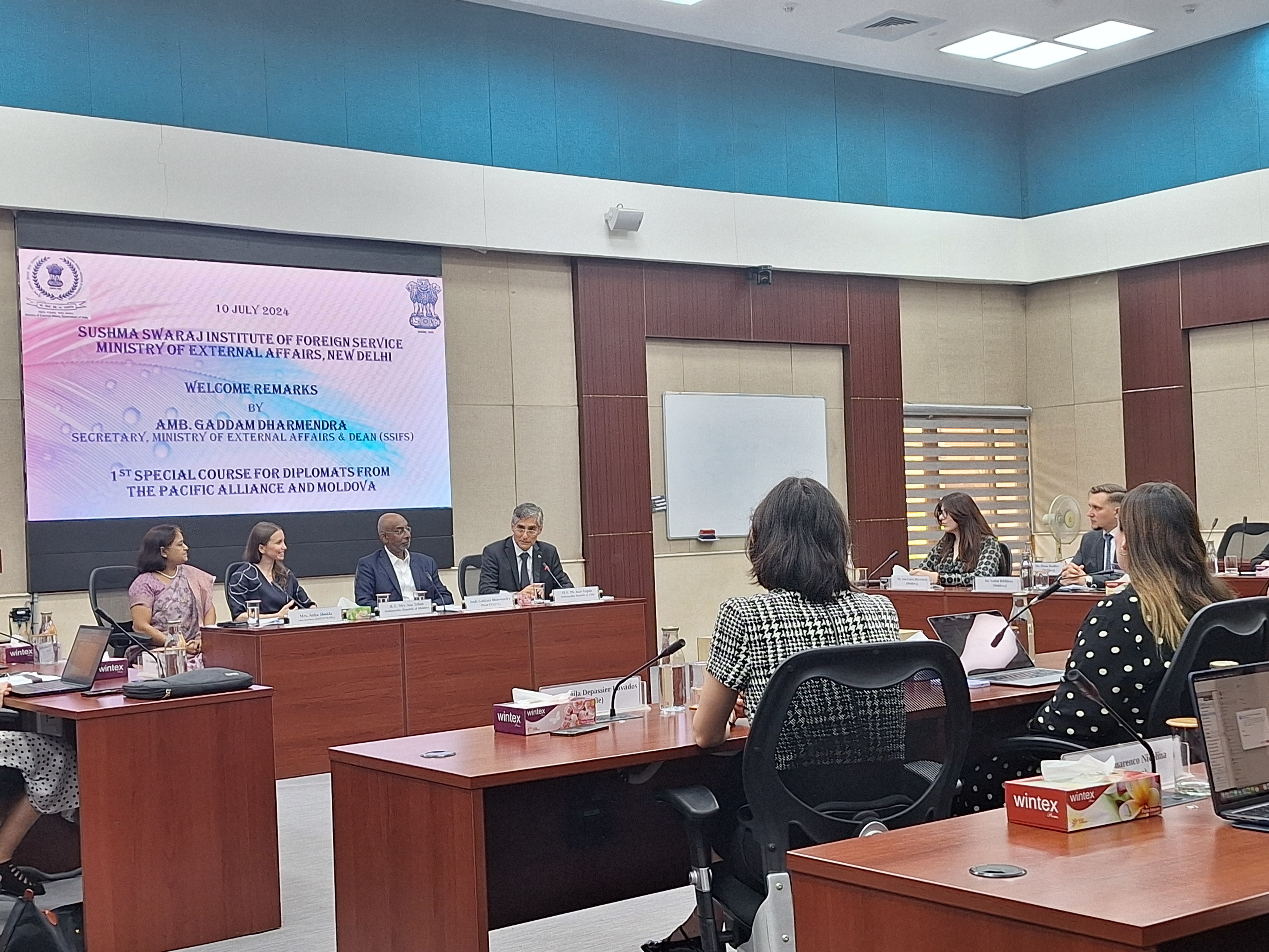 El día 10 de julio, en dependencias del Sushma Swaraj Institute of Foreign Service (SSIFS), se realizó la inauguración del “1er Curso Especial para Diplomáticos/as de la Alianza del Pacífico y Moldavia”, una instancia creada este año por el SSIFS y la Cancillería de India para promover las relaciones diplomáticas con los cuatro países que componen la alianza, así como con la República de Moldavia.