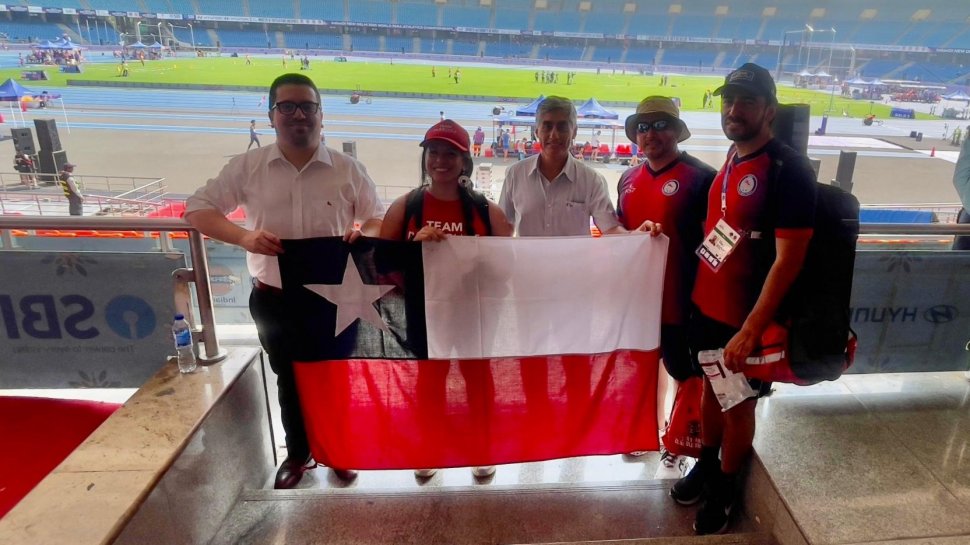 El embajador Juan Angulo y el cónsul Nicolás Muñoz se reunieron con la delegación deportiva chilena que asistió al Mundial de Paratletismo, que se realizó entre el 27 de septiembre y el 5 de octubre de 2025 en el Estadio Jawaharlal Nehru, en Nueva Delhi, India.