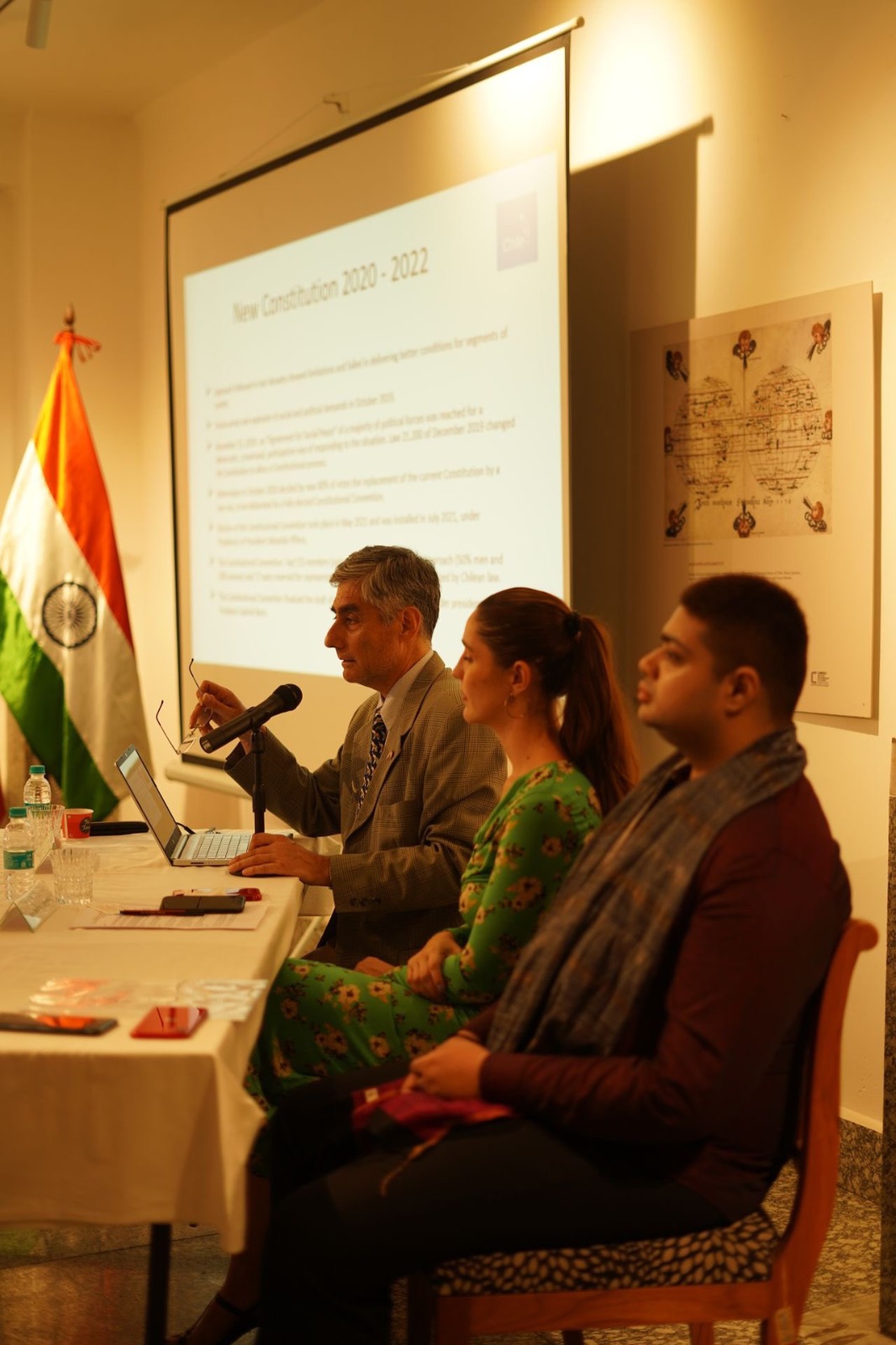 En la instancia, el Embajador de Chile en India, Juan Angulo, realizó un análisis del proceso constituyente que se encuentra desarrollando el país. Posteriormente, la Cónsul de Chile en Nueva Delhi, Amaranta Vandeperre, expuso sobre el ecosistema de ciencia, tecnología e innovación de Chile y los programas de la iniciativa Start-Up Chile.