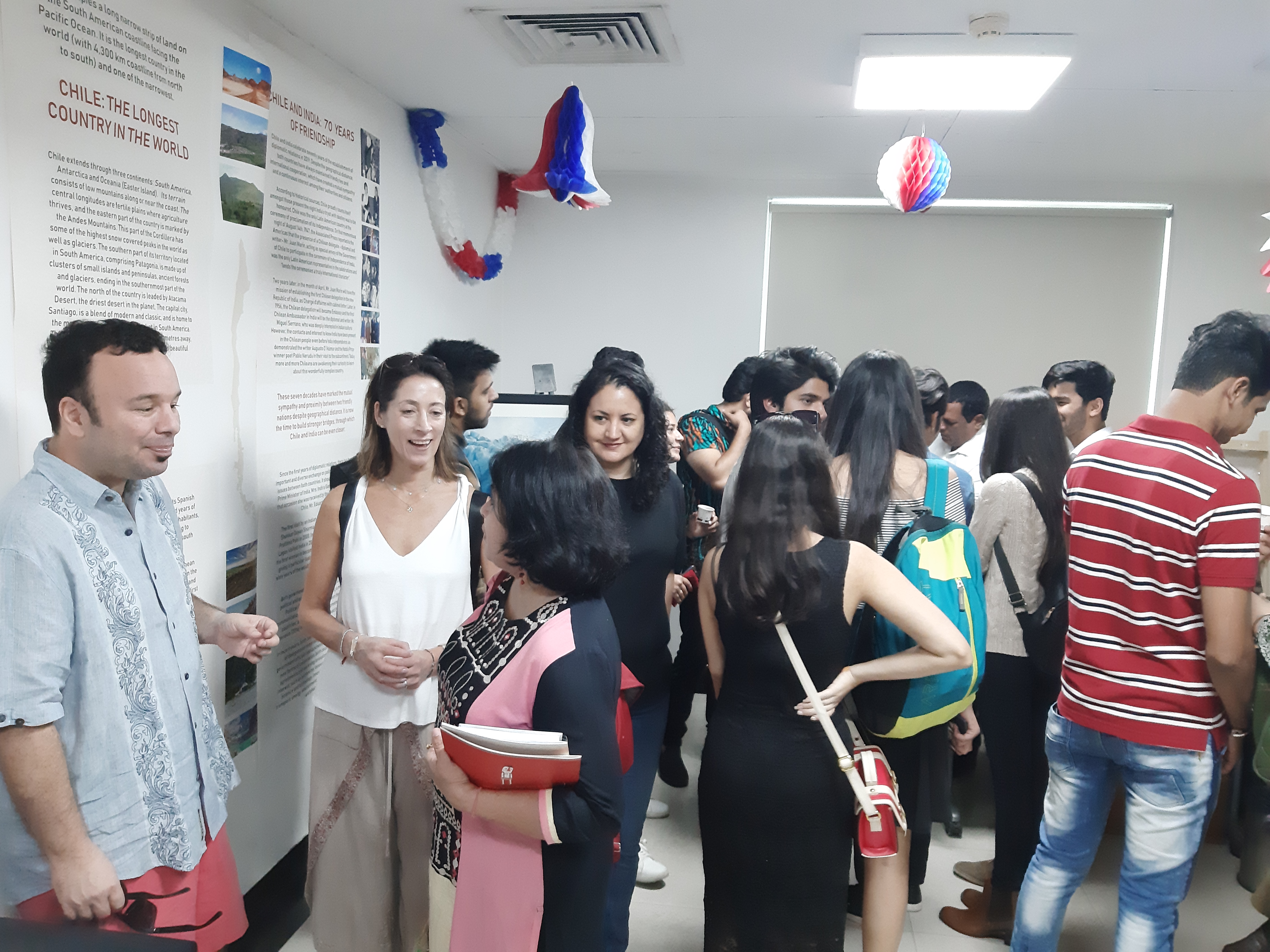 Luego de la tradicional "lluvia de palabras" en la inauguración, en la que participaron los Embajadores, los asistentes pudieron acceder a la feria de stands organizada por la embajadas presentes y disfrutar de clases de baile, música, gastronomía y cine en español. La Embajada de Chile en India presentó información de nuestro país y de los setenta años de relaciones diplomáticas con India.