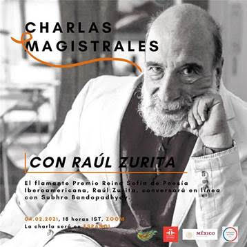 El programa dedicado a Raúl Zurita, quien obtuvo el Premio Nacional de Literatura de Chile en 2000, inauguró el ciclo de charlas magistrales que el Instituto Cervantes planesa realizar este año y en esta oportunidad el poeta Zurita sostuvo una conversación con el poeta bengalí señor Subhro Bandopadhyay.