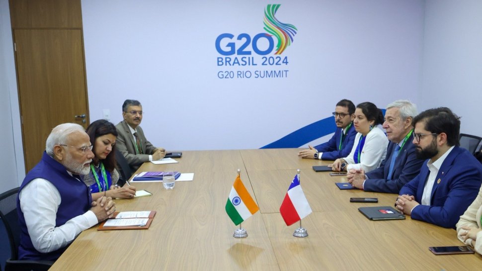 El martes 19 de noviembre en Río de Janeiro, Brasil, el Presidente de la República, Gabriel Boric, sostuvo una reunión de trabajo con el Primer Ministro de la República de India, Narendra Modi, en los márgenes de la reunión anual del G20, del cual India es parte.