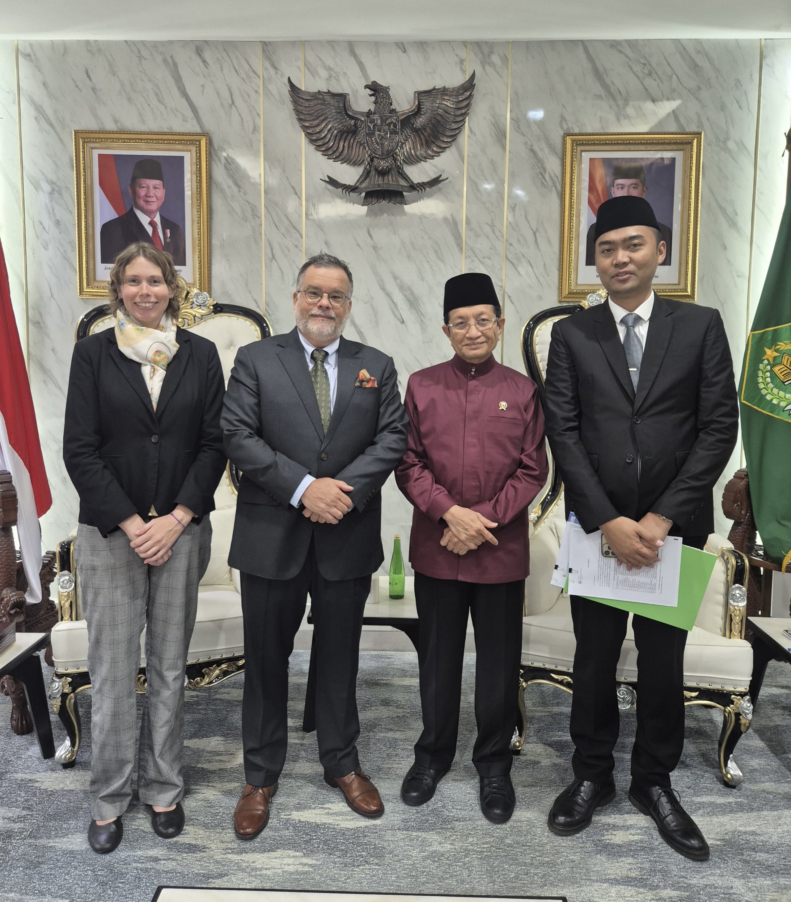 Iniciando el año con un activo despliegue en terreno y encuentros con líderes de la comunidad en Indonesia, el Embajador Mario Ignacio Artaza sostuvo un encuentro con el ministro de Asuntos Religiosos, el Gran Imán de la mezquita más grande del sudeste asiático, Istiqlal, y fundador de la Organización Interreligiosa Masyarakat Dialog Antar Umat Beragama, el Dr. Nasaruddin Umar.