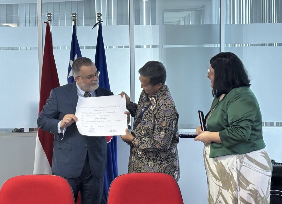 El embajador Mario Ignacio Artaza reconoció en nombre del Ministerio de Relaciones Exteriores a Wartoyo por sus 35 años desempeñando funciones en la Embajada de Chile en Indonesia. Su destacada labor y la dedicación con la que ha desarrollado su trabajo han contribuido sin duda al éxito de esta misión.