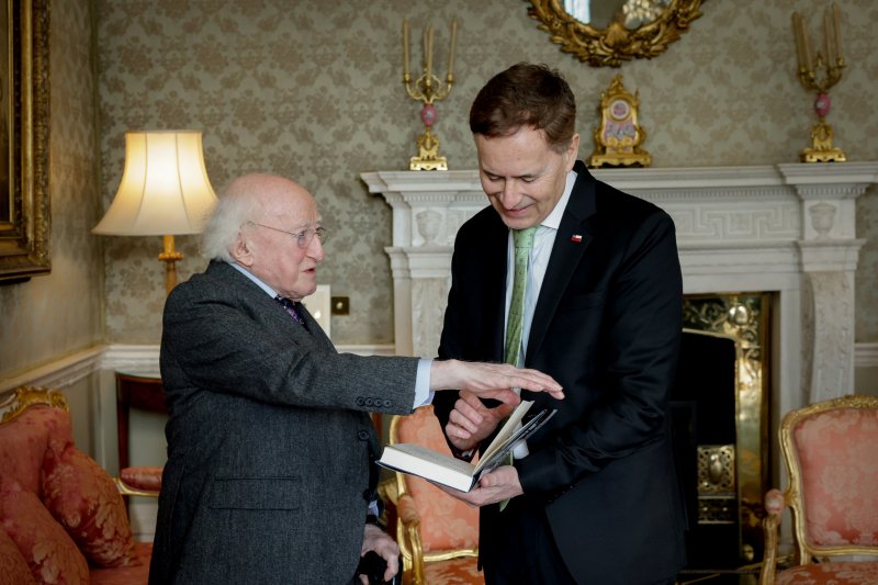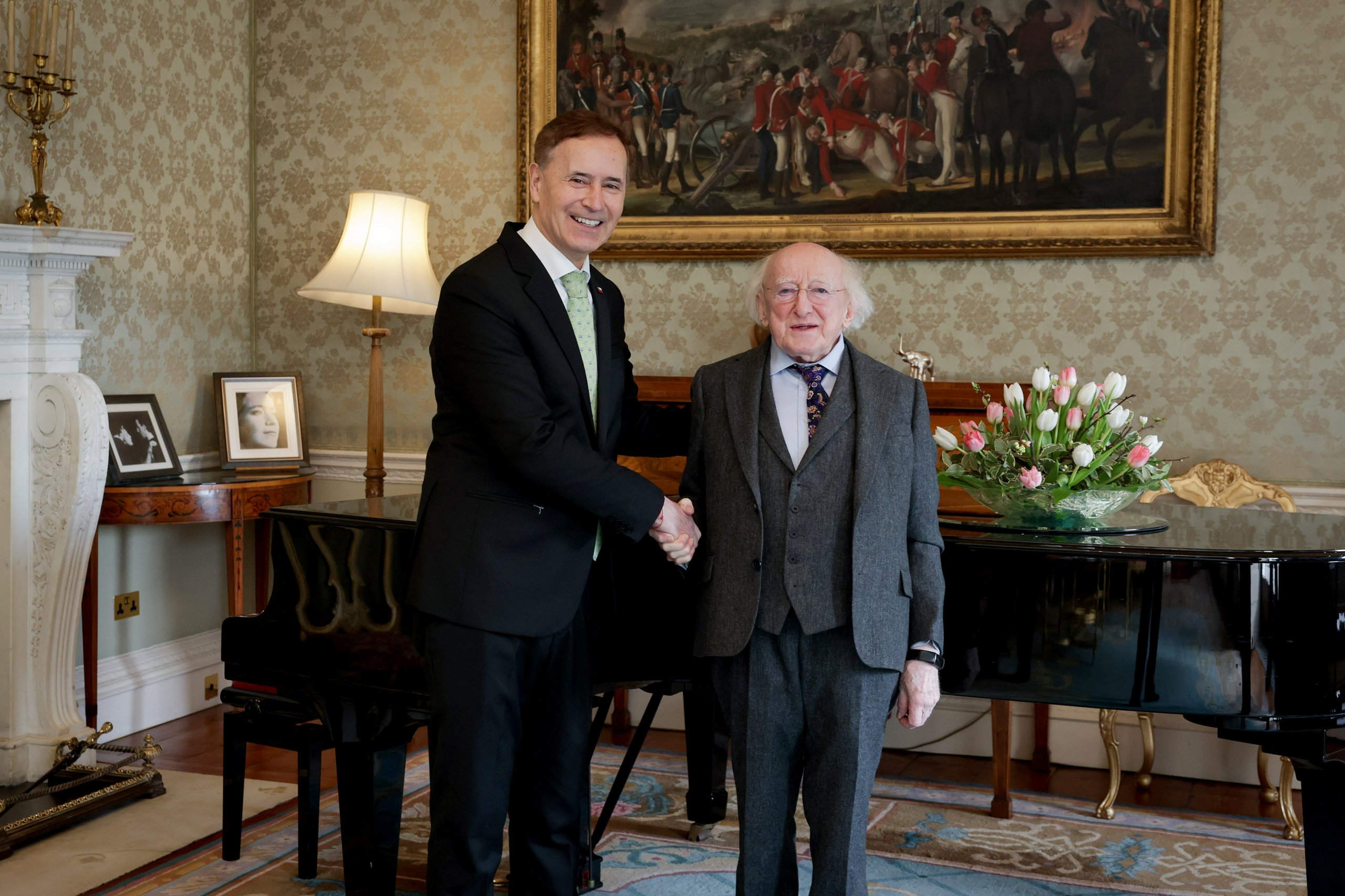 El Presidente de Irlanda recibe al embajador de Chile en una reunión de despedida al término de su misión en el Palacio Presidencial