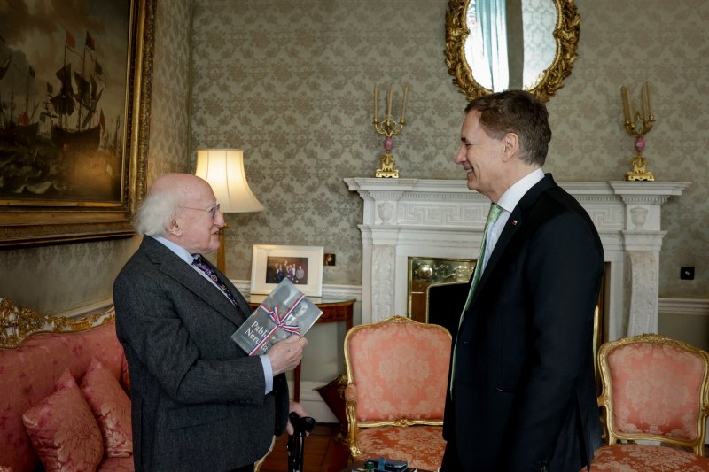 El Presidente Higgins recordó y agradeció el reconocimiento que el año 2015 le entregó la Presidenta Michelle Bachelet por su apoyo a los chilenos en el exilio. El embajador agradeció al mandatario por su participación en actividades realizadas en la Embajada de Chile durante los años 2023 y 2024, así como su colaboración en la iniciativa cultural “Neruda As Gaeilge” (Neruda en irlandés), que incluyó la traducción oficial por primer vez de tres poemas de Pablo Neruda al idioma irlandés.