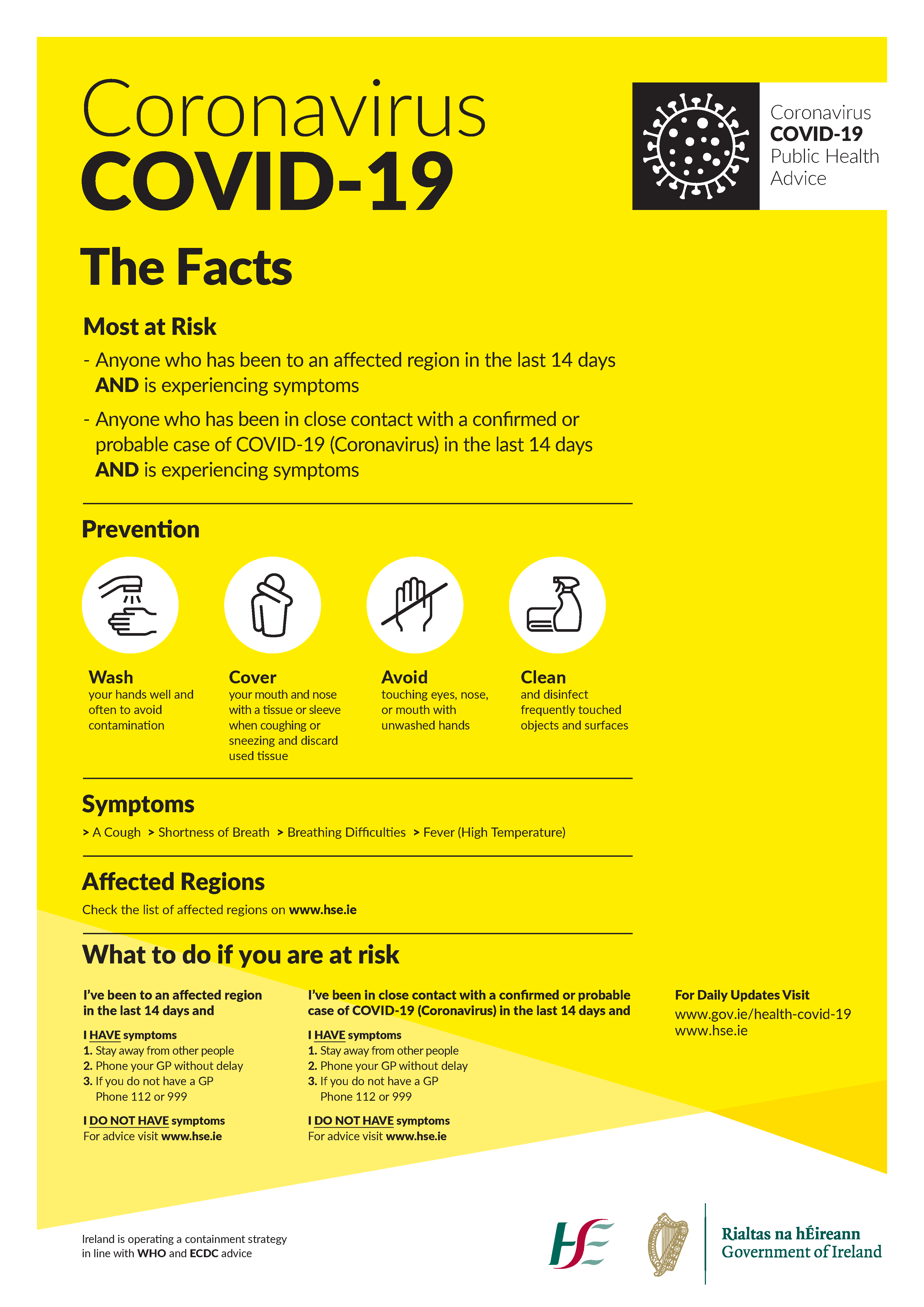 En relación con las medidas adoptadas por el Gobierno de Irlanda frente al COVID-19, compartimos información sobre cómo prevenir el contagio del virus.
