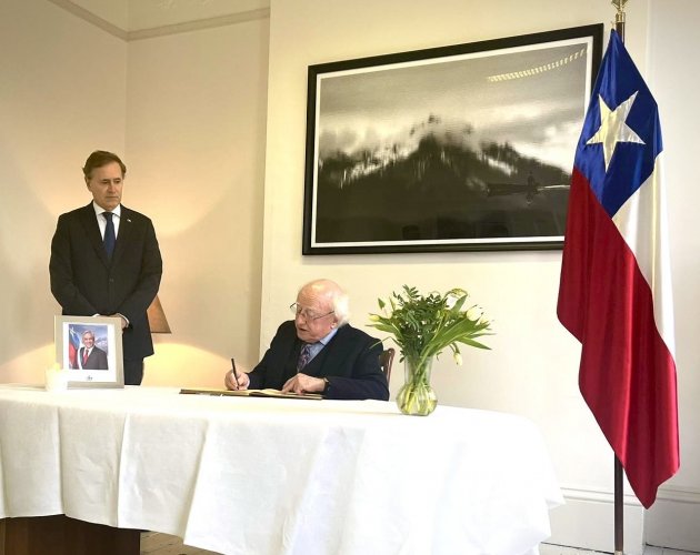 El Presidente de Irlanda recibe al embajador de Chile en una reunión de despedida al término de su misión en el Palacio Presidencial