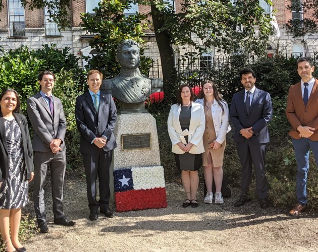 Ceremonia oficial y ofrenda floral con motivo del 246° aniversario del natalicio de Bernardo O'Higgins en Dublín