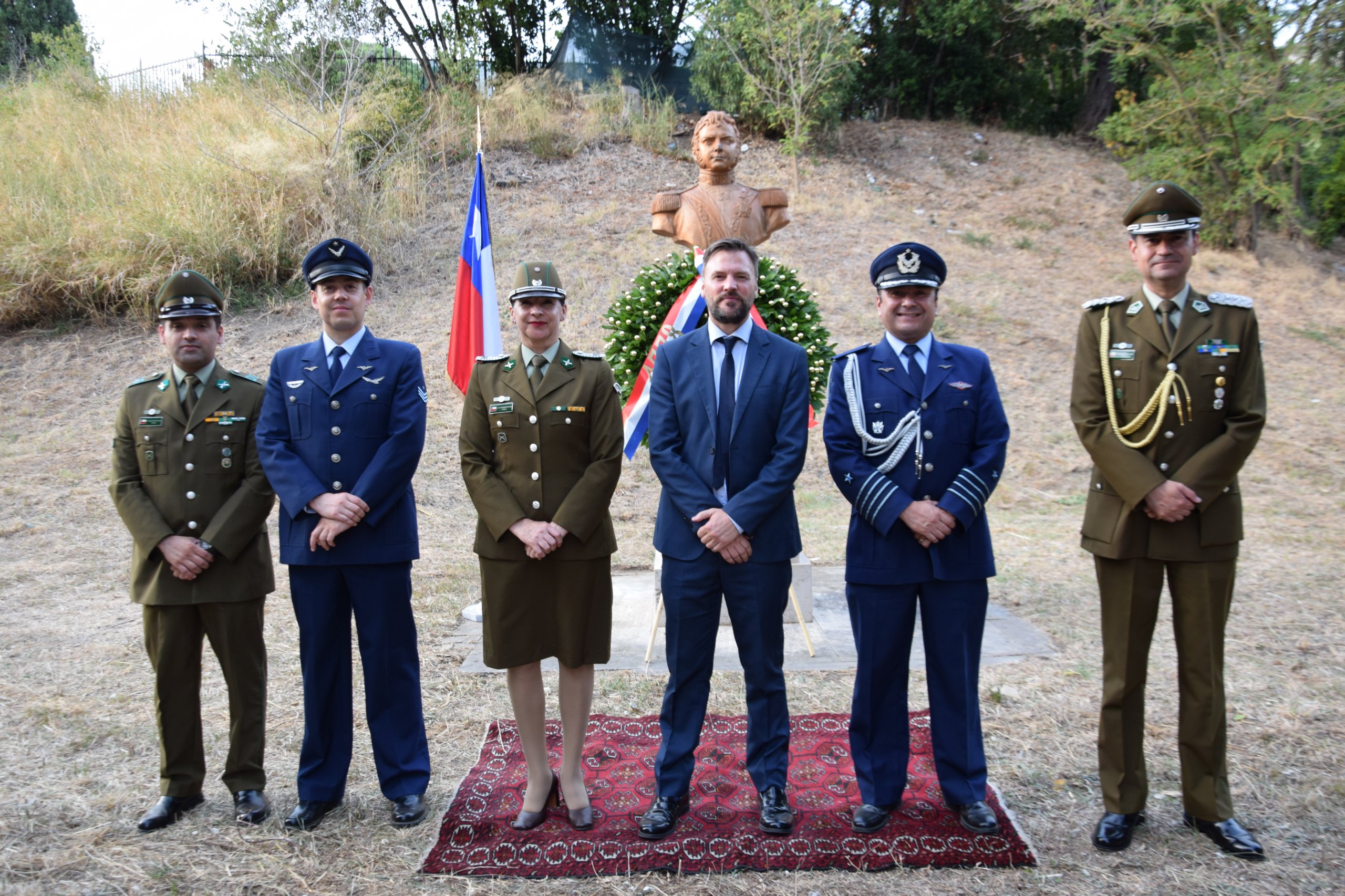 El Círculo chileno-italiano en conjunto con la Agregaduría de Ejército y Fuerza Aérea y con la colaboración de la Embajada de Chile y las Agregadurías de Defensa y Naval, y Policial, celebró el 247° aniversario del Natalicio del Padre de la Patria, Bernardo O’Higgins con una ofrenda floral colocada en el busto del héroe nacional en la Plaza Simón Bolívar, de Roma.