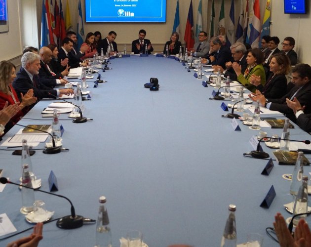 En su intervención, Anna Lisa Boni, Asesora de Asuntos internacionales y cooperación de la Municipalidad de Bolonia para fondos europeos/PNR, transición ecológica y relaciones internacionales, subrayó la importancia de la innovación, el financiamiento de start-ups para la transición energética y del Tecnopolo de Bologna CNR para promover la innovación de los procesos industriales en laboratorios de investigación.