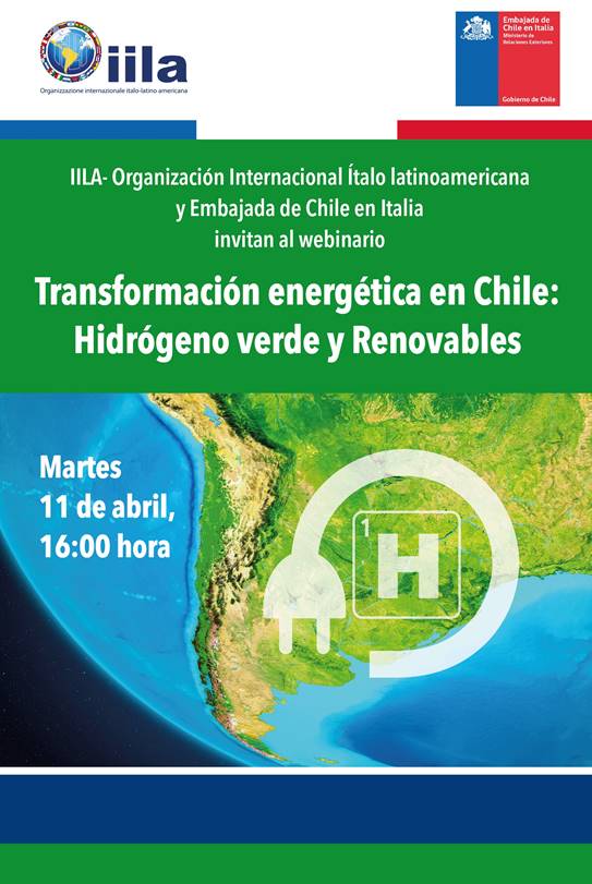 El 11 de abril de 2023, en la sede de la Organización internacional ítalo-latino americana IILA, se llevó a cabo el evento “Transformación Energética en Chile: Hidrógeno Verde y Renovables”, organizado por la Embajada de Chile en Italia con la colaboración de la IILA.