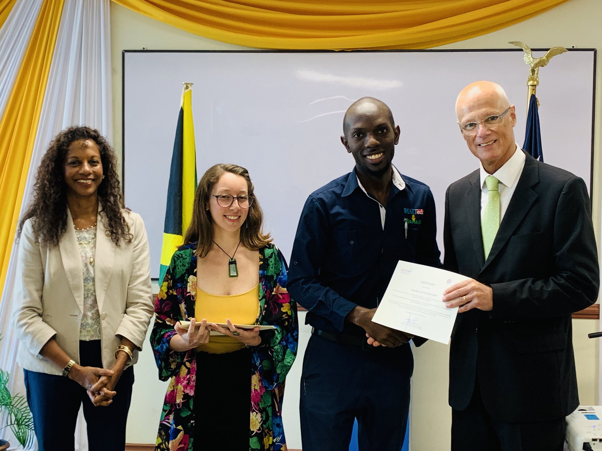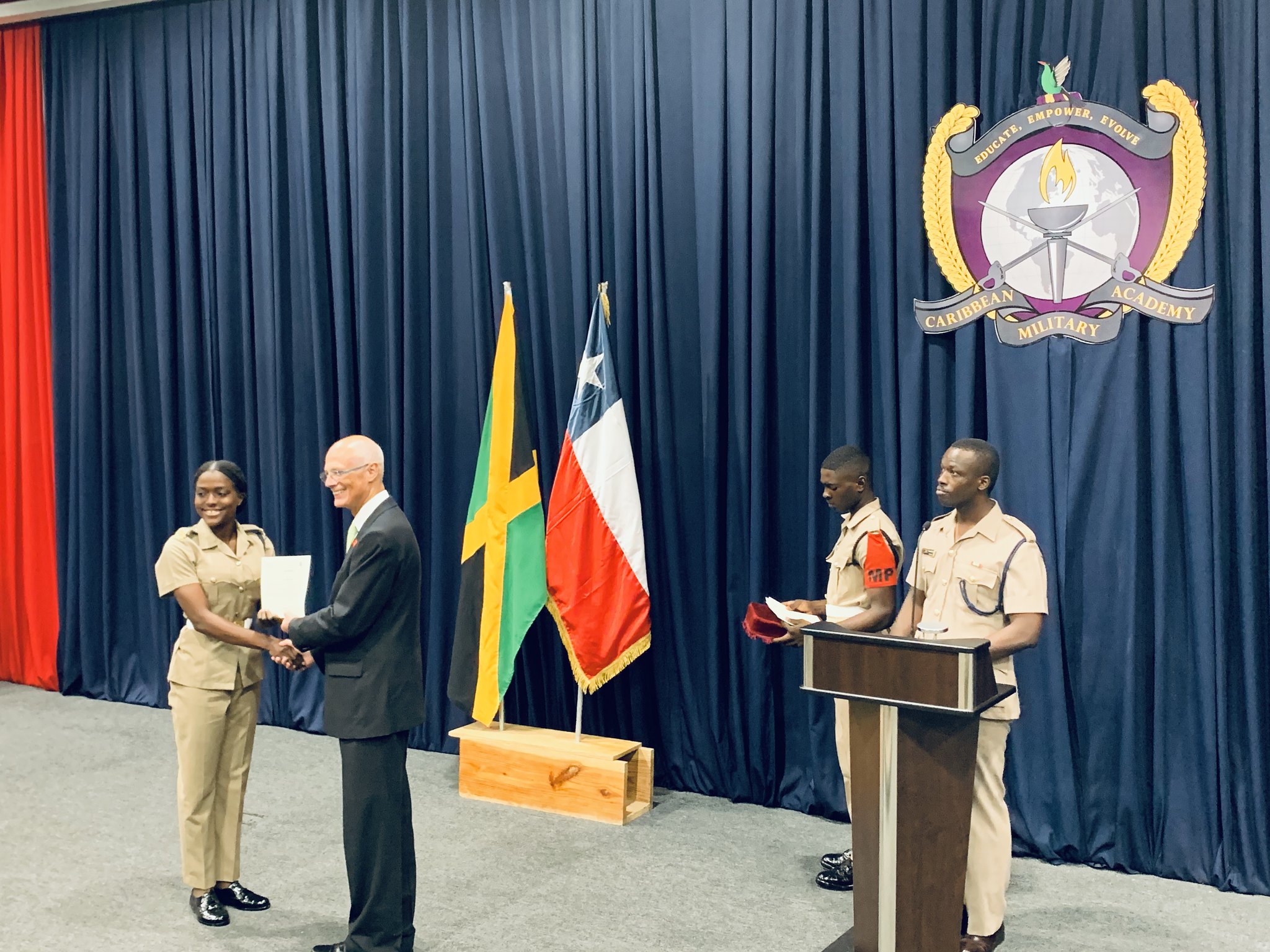 Al término de estos cursos se realizaron las ceremonias de graduación en UWI, UCC y JDF, en las que se entregaron certificados a los estudiantes que completaron con éxito el programa. En estas ceremonias asistieron Shorna-Kay Richards, Directora del Departamento de Relaciones Bilaterales y Kurt Davis, Subdirector del Departamento de Relaciones Bilaterales del Ministerio de Relaciones Exteriores y Comercio Exterior de Jamaica; el Teniente General Profesor Rocky R. Meade, Jefe del Estado Mayor de JDF y el Teniente Coronel Blair Waddington, de la Academia Militar del Caribe; Marcos Avilez, Director de Relaciones Internacionales y Sergio García, Coordinador Programa de Movilidad Estudiantil de la Pontificia Universidad Católica de Valparaíso; la Profesora Bernadette Warner, Vicepresidenta Ejecutiva de Asuntos Académicos de UCC y la Embajadora Gillian M. Bristol, Directora del Centro Latinoamericano y del Caribe de UWI.