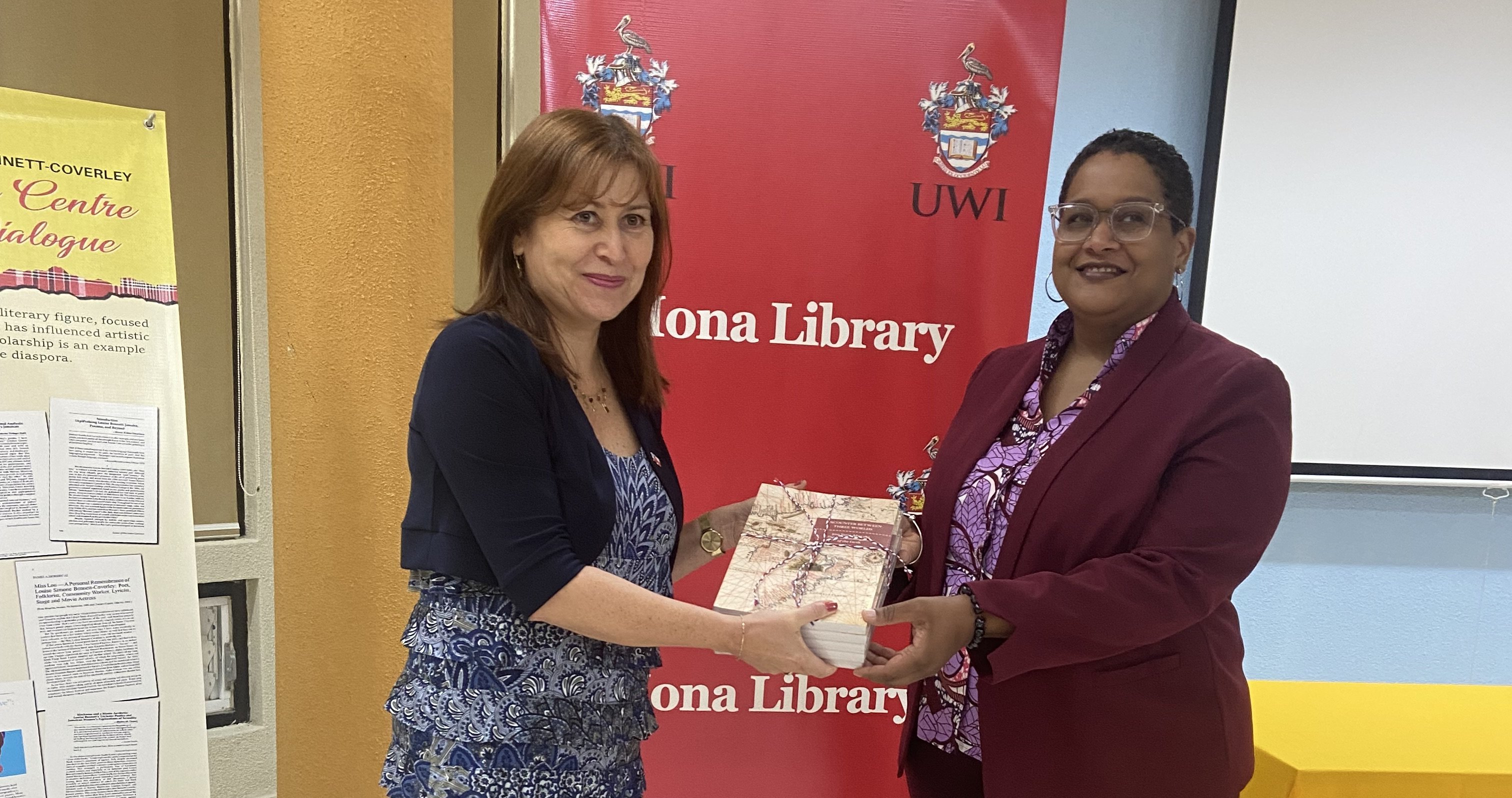 El día 22 de septiembre, la Embajadora Constanza Figueroa junto a la Cónsul Josefa Arce, fueron recibidas por la Directora de la Biblioteca de la Universidad de West Indies, Sra. Jessica Lewis, para efectuar una donación de libros "Encounter Between Three Worlds: 500 Years After the First Circumnavigation of the Earth" y “Underwater Chile Submarino” de Eduardo Sorensen.