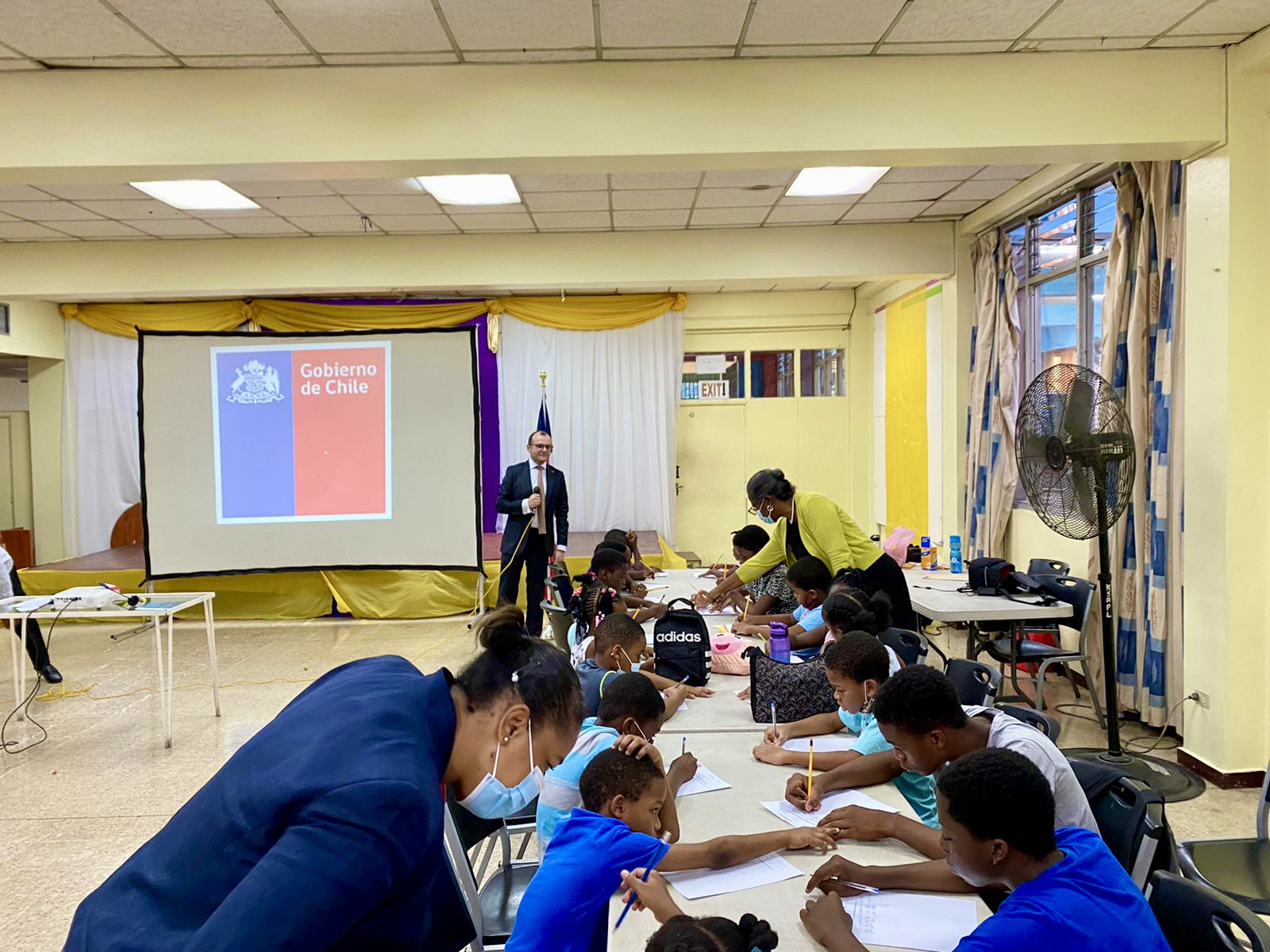 La Embajada de Chile realizó una actividad en la biblioteca pública de Jamaica, donde niños, niñas y adolescentes entre 5 y 16 años pudieron conocer acerca de los fondos marinos de nuestro país. Esto, en el marco de las reuniones del Consejo y la Asamblea de la Autoridad Internacional donde se discuten las regulaciones para la explotación del suelo marino.
