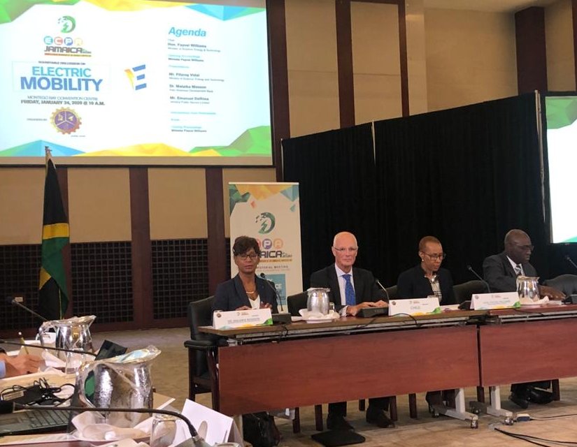 El viernes 24 de enero, el Embajador Francisco Bernales participó en la mesa redonda sobre movilidad eléctrica en Jamaica, organizada por el Ministerio de Ciencia, Energía y Tecnología. Este encuentro se celebró en el Centro de Convenciones de Montego Bay, en el marco de la Cuarta Reunión Ministerial de la Alianza de Energía y Clima de las América (ECPA, por sus siglas en inglés), la que se llevará a cabo los días 27 y 28 de febrero del presente año.