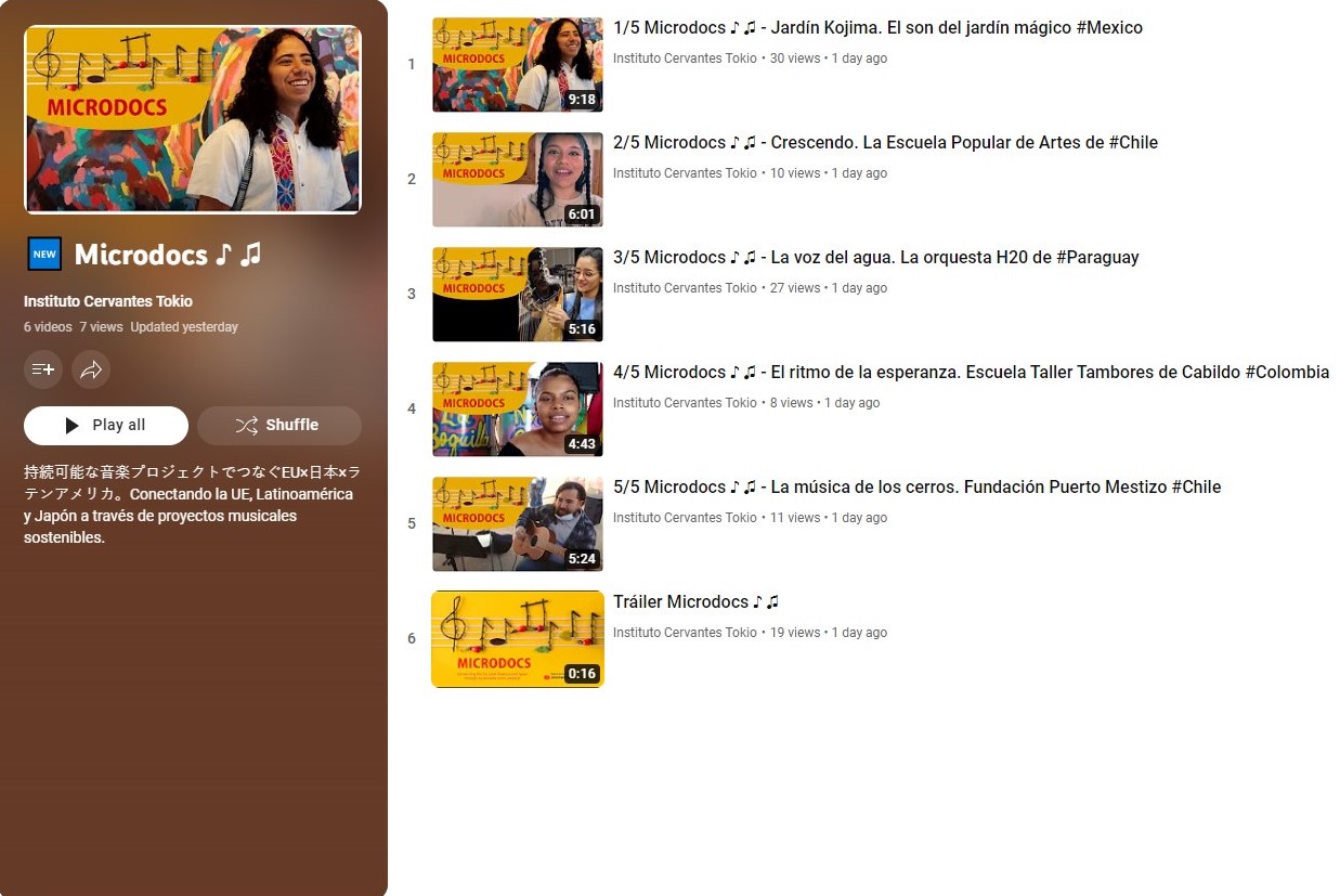 La Embajada de Chile en Japón participó del proyecto organizado por el Instituto Cervantes de Tokio el cual con consistía en buscar colaboración y cocreación de microdocumentales sobre iniciativas de sostenibilidad musical en países de América Latina (México, Paraguay, Colombia y Chile) que han impactado en Europa y que ahora se introducen en Japón.