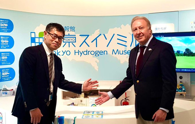 En la visita, el Embajador de Chile en Japón, Ricardo G. Rojas, fue recibido por las autoridades del Museo y de la Corporación de Servicios Públicos Ambientales de Tokio, quienes explicaron la forma en que la Gobernación de Tokio se encuentra trabajando para crear una sociedad ambientalmente avanzada en base al hidrógeno.