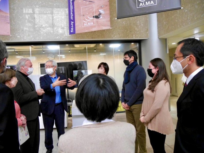 La visita incluyó un encuentro con el Director General de NAOJ, Saku Tsuneta; Álvaro González, Director del Proyecto ALMA Japón; Tetsuhiro Minamidani, Director del Proyecto ASTE; y otros representantes, quienes destacaron el apoyo que el Gobierno de Chile y que esta Embajada dieron para mantener los proyectos ALMA y ASTE operativos en las adversas circunstancias de la pandemia.