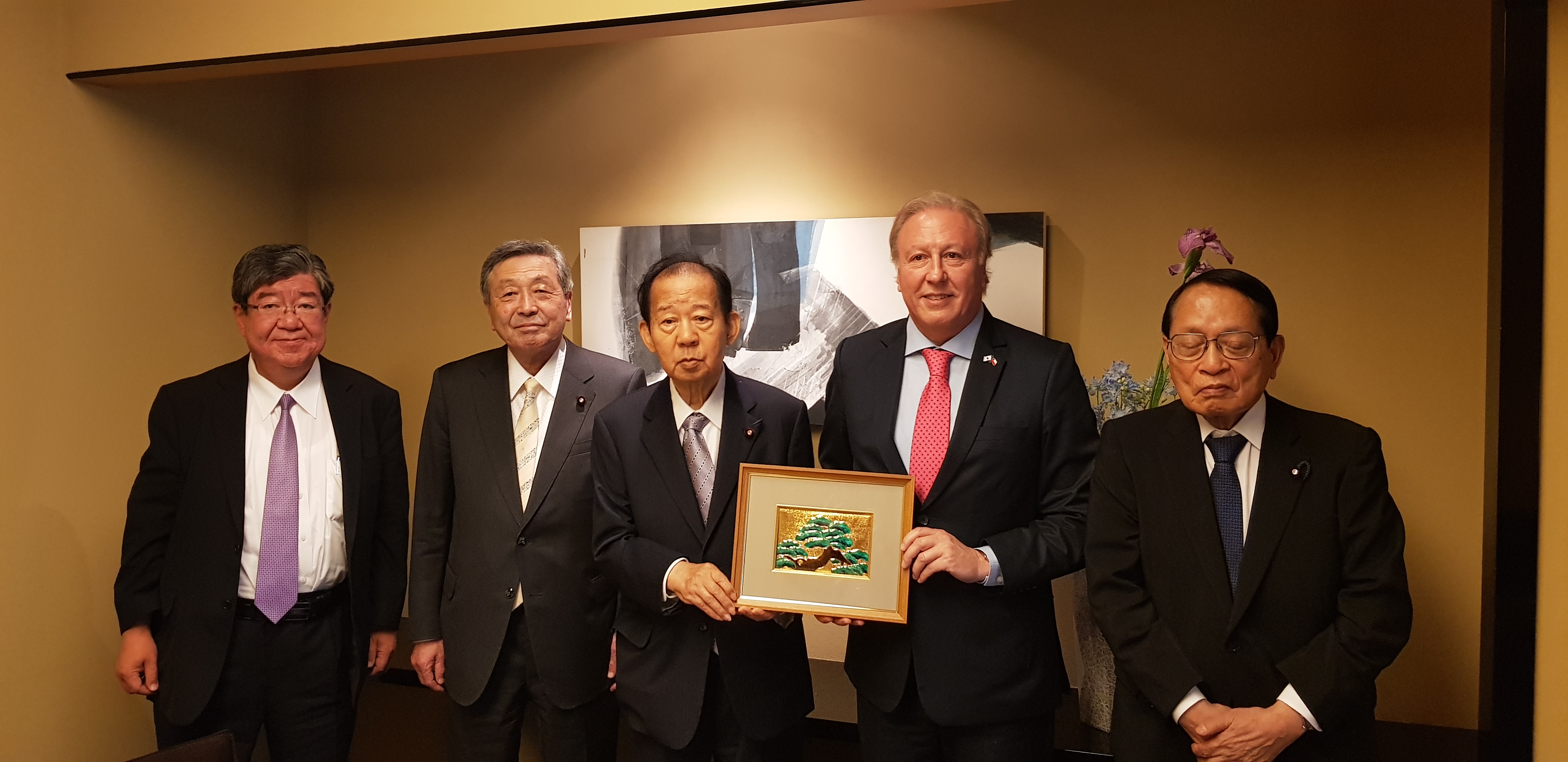 Este martes 17 de mayo, el Embajador de Chile en Japón, Ricardo G. Rojas, sostuvo un encuentro con parlamentarios de la Dieta japonesa, ocasión en la que se abordaron diversos temas de la relación entre Chile y Japón.