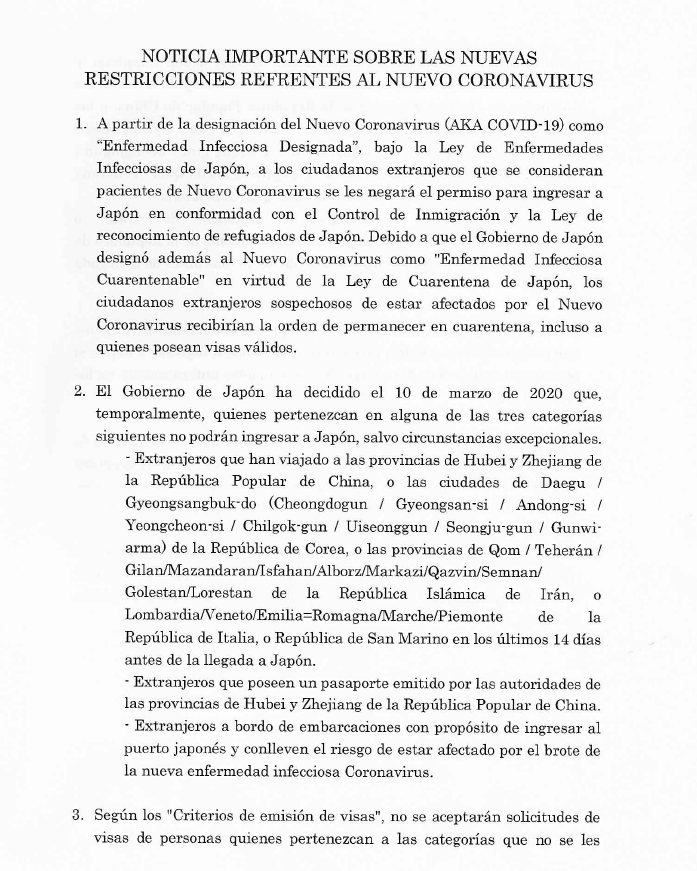 Ante el brote de un nuevo tipo de coronavirus, las autoridades japonesas están implementando una serie de medidas destinadas a mitigar los riesgos de contagio, entre las que se cuentan (click en la imagen para ampliar)*: