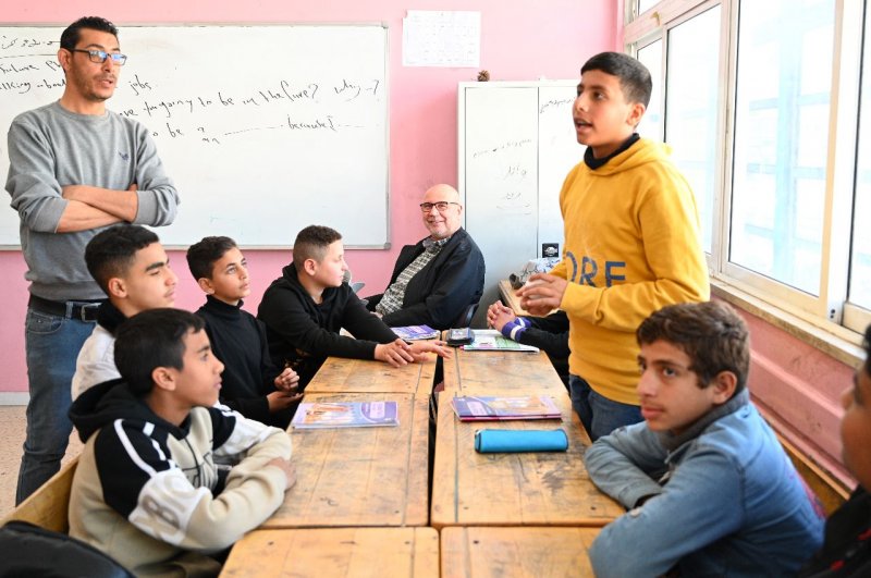Recorrió uno de los cuatro colegios UNRWA, el centro de salud de dicha agencia y conversó con familia refugiados palestinos en el sector de los albergues.