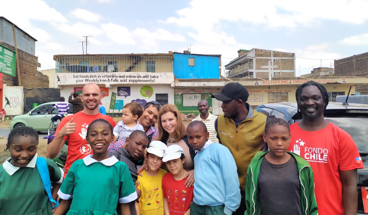 La Embajadora de Chile en Kenia, María Alejandra Guerra, junto a la Cónsul Constanza Gajardo Benítez, acudió a la realización de la Liga Fútbol Más que la organización no gubernamental chilena homónima realizó el sábado 27 de julio en el Barrio de Mathare, Nairobi.