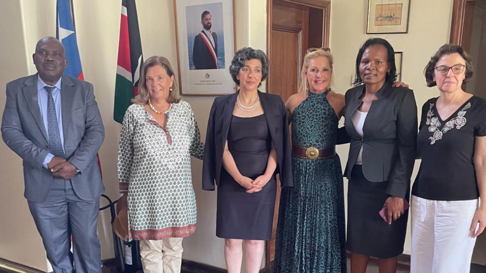 La semana recién pasada la Embajadora de Chile en Kenia, Maria Alejandra Guerra, recibió en la residencia oficial a sus pares de España y Portugal, Embajadoras Cristina Diaz Fernández-Gil y Ana Filomena Da Costa Rocha respectivamente, para sostener un almuerzo de trabajo junto a la Profesora Mary Gikungu, Directora General de los Museos Nacionales de Kenia y el Sr Frederick Kyalo, Director de Antigüedades, Sitios y Monumentos de Kenia.