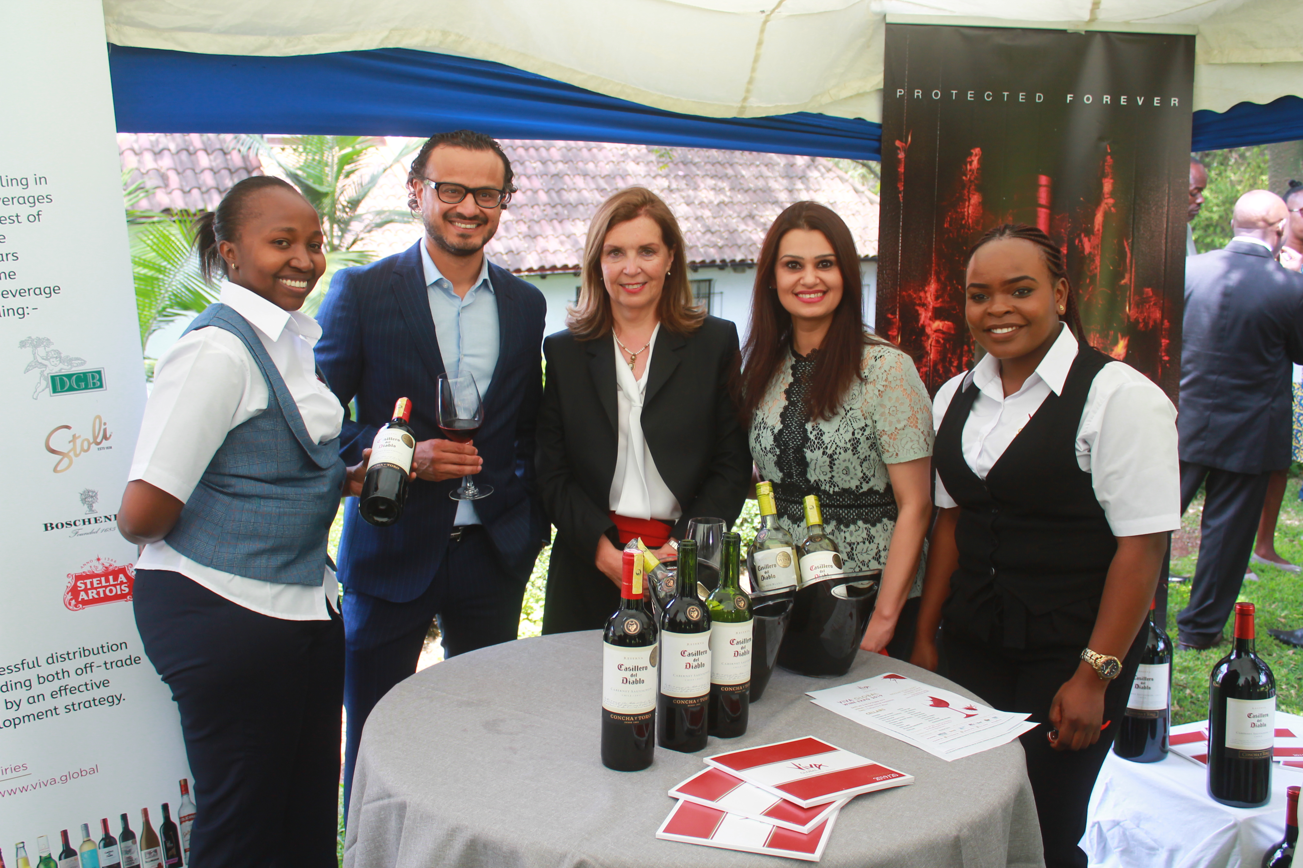 En el marco de la celebración de las Fiestas Patrias chilenas, se realizó una degustación de vino nacional en dependencias de la Embajada en Nairobi. Esto se pudo realizar con la colaboración de una de las importadoras y distribuidoras de vino más importantes en Kenia, Viva Global, representante de la Viña Concha y Toro, que llevó vinos Casillero del Diablo.
