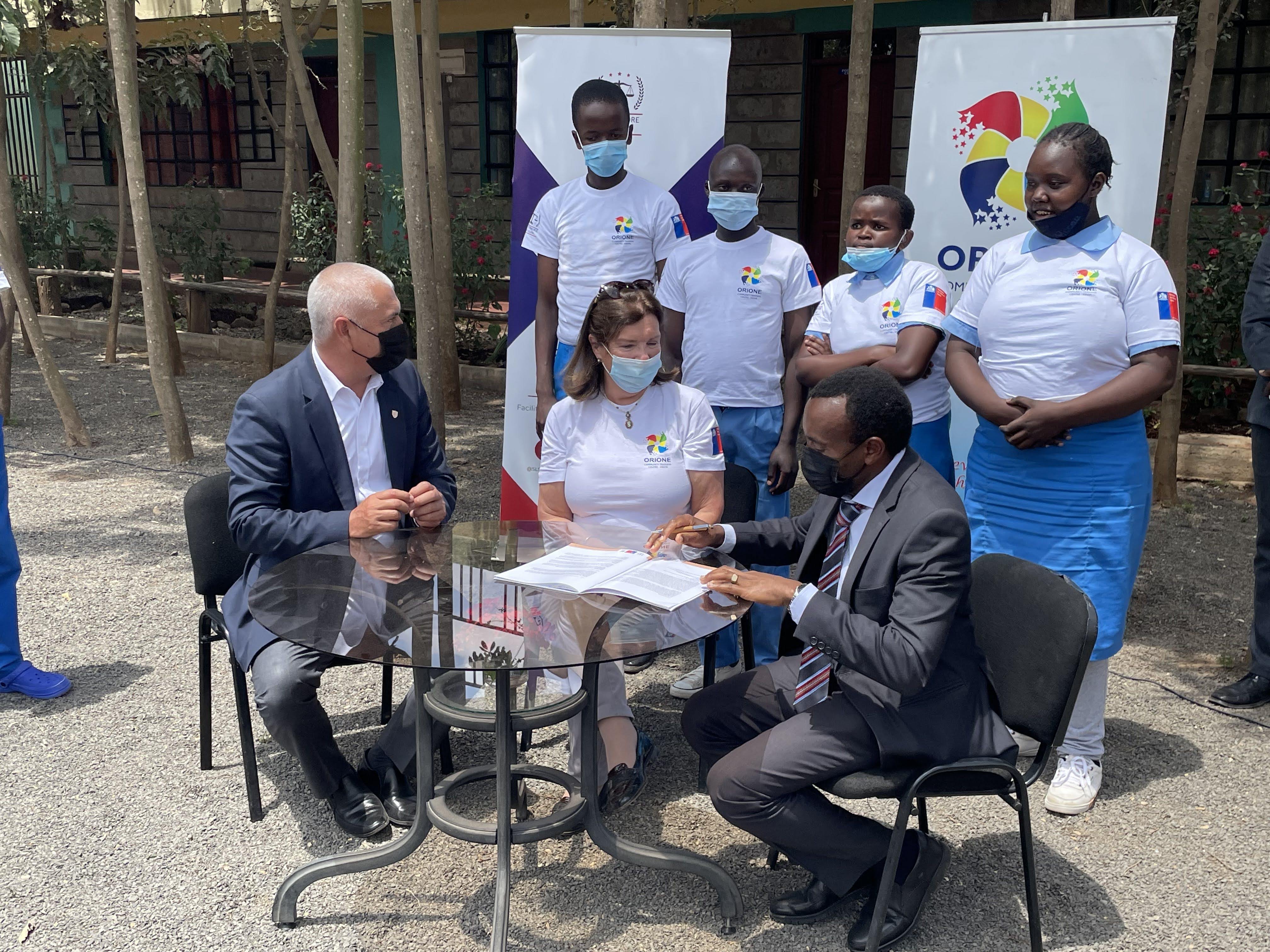 El 22 de septiembre, la Embajadora de Chile en Kenia, Maria Alejandra Guerra y el segundo de la Misión, Alejandro Montero, participaron en la premiación, entrega de manual y cierre del taller realizado en conjunto entre la Embajada, la Facultad de Derecho de la Universidad de Strathmore y el Orione Community Training Centre.