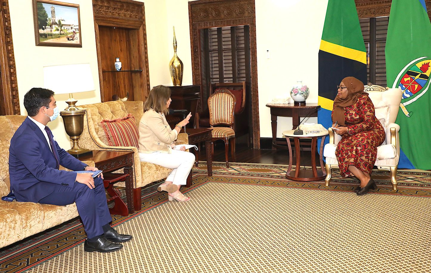 Luego de la presentación de Cartas Credenciales, la Embajadora Guerra y la Presidenta Suluhu establecieron una conversación en la cual concordaron en la voluntad mutua de fortalecer la agenda bilateral entre Chile y Tanzania, especialmente en el ámbito de la cooperación.