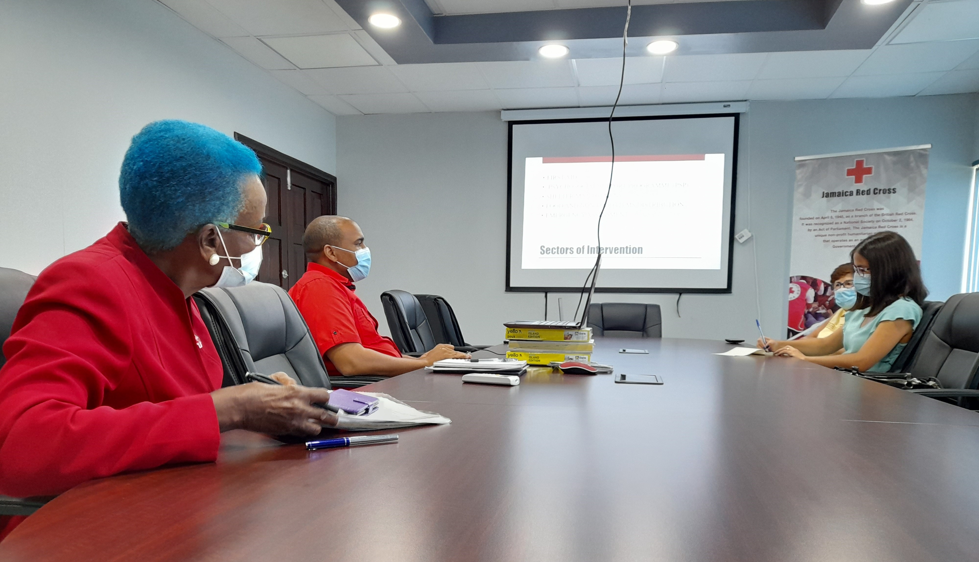 Este jueves 16 de septiembre, la Cónsul de Chile en Kingston, Katia Contreras, junto a la secretaria de la embajada, Elena Girvan, asistieron a una reunión con la Directora General de Cruz Roja de Jamaica, Yvonne Clarke, y el jefe de servicios de emergencias, Kevin Douglas. El encuentro se realizó en la sede de dicha institución, ubicada en la parroquia de Santa Catalina, contigua a la capital jamaiquina.