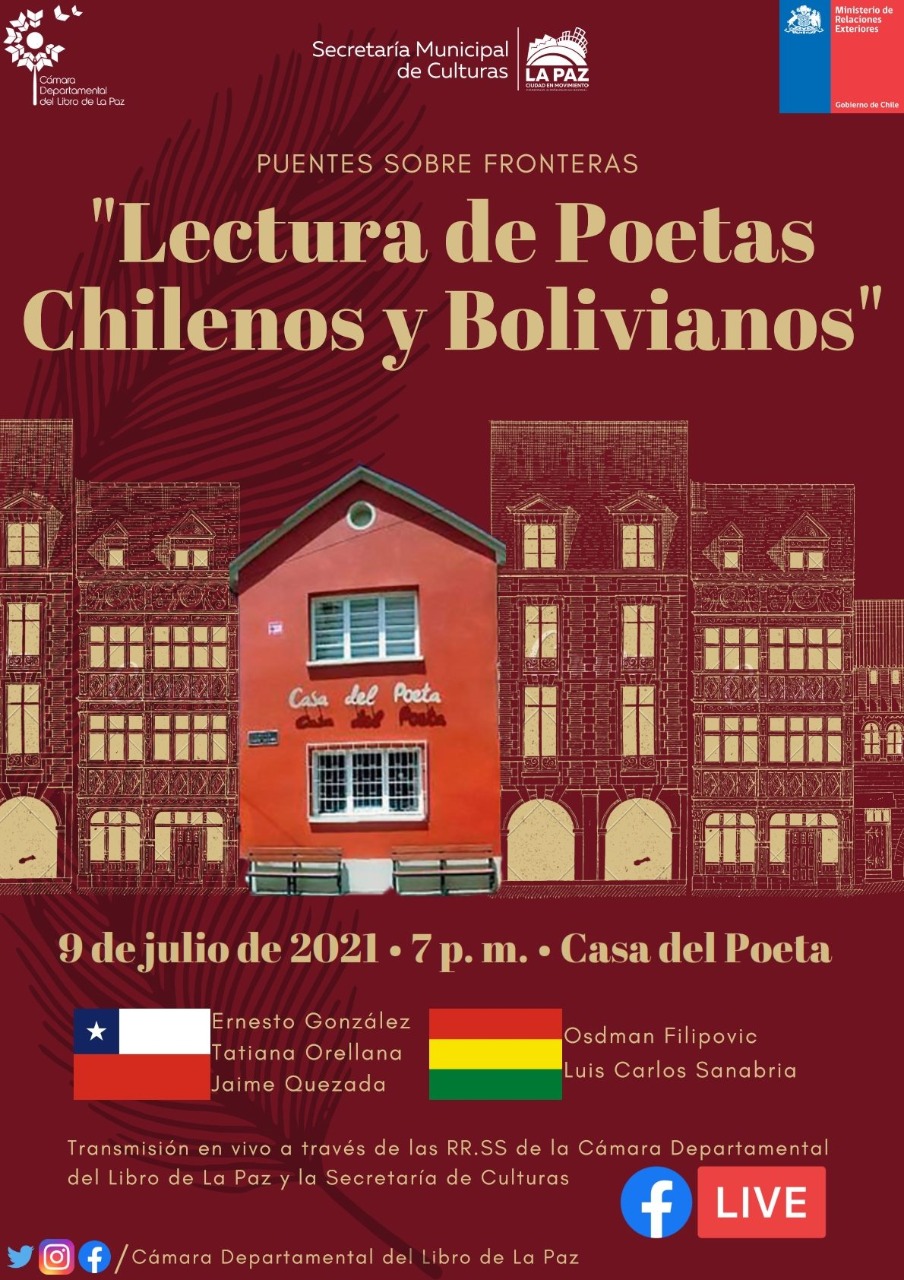 Consulado realizará webinar "Lecturas de Poetas Chilenos y Bolivianos"