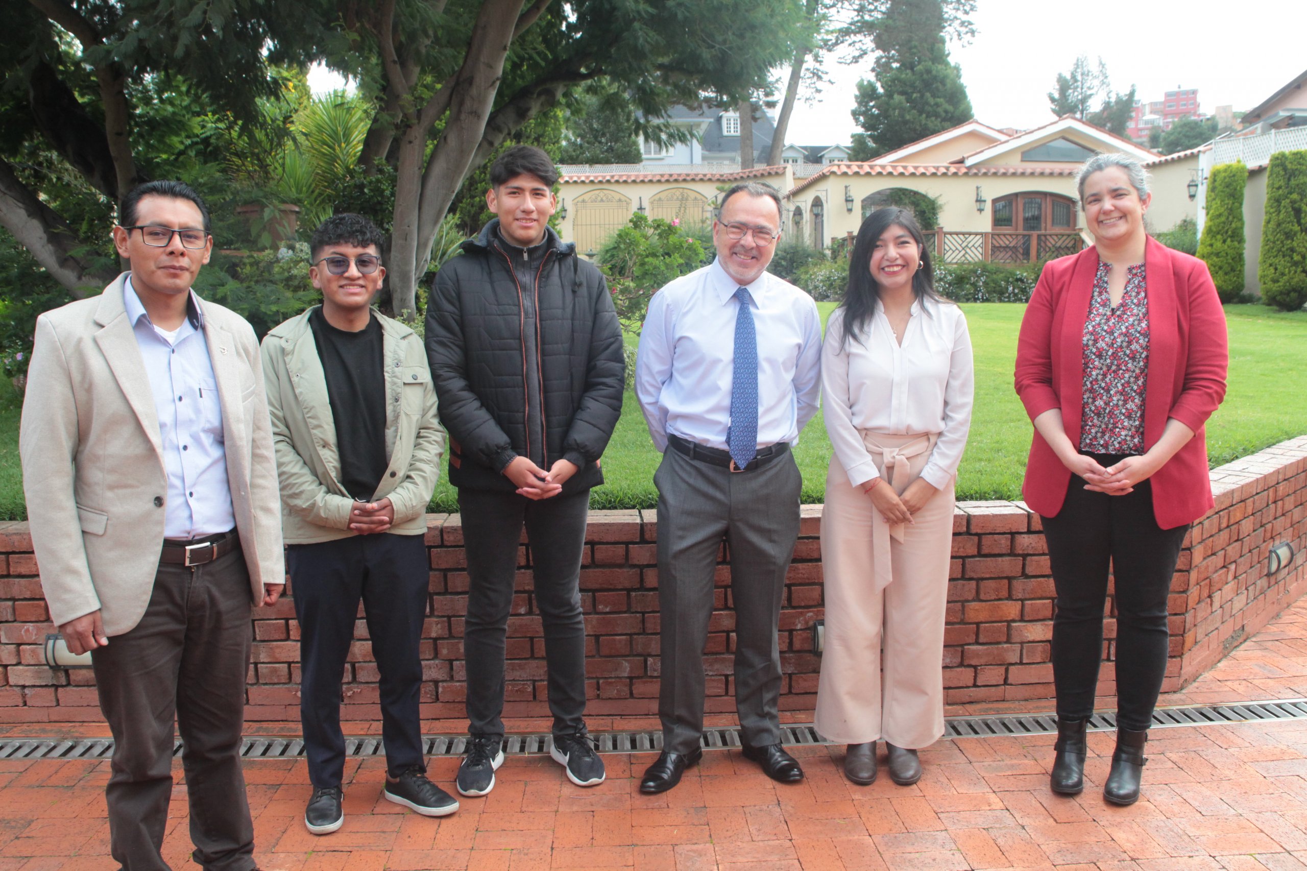 El 21 de febrero pasado el cónsul general de Chile en La Paz recibió a cuatro de las y los jóvenes bolivianos beneficiados este año 2025 con becas de la Agencia Chilena de Cooperación Internacional para el Desarrollo (AGCID) para estudiar en universidades chilenas.