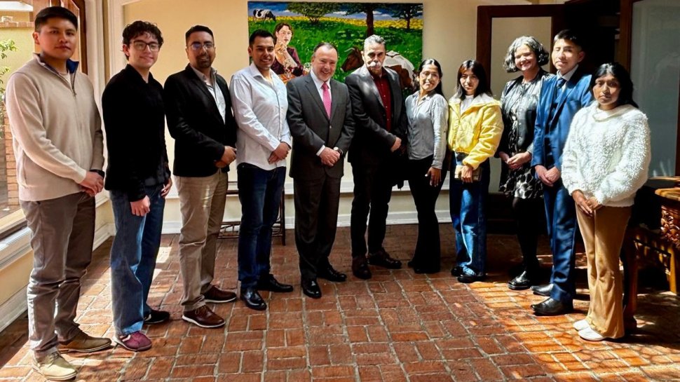El Cónsul General de Chile en La Paz, Fernando Velasco, recibió a 8 de los 9 bolivianas y bolivianos beneficiados con becas AGCID para el año 2026 y que viajarán a para realizar sus estudios de pregrado y postgrado en universidades chilenas.