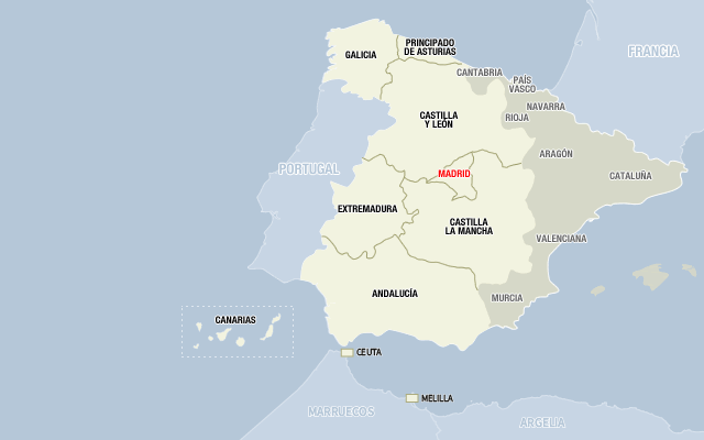 Junta de Andalucía, Canarias, Junta de Castilla La Mancha, Junta de Castilla y León, Comunidad de Madrid, Junta de Extremadura, Xunta de Galicia, Principado de Asturias, Ciudades autonómicas de Ceuta y Melilla